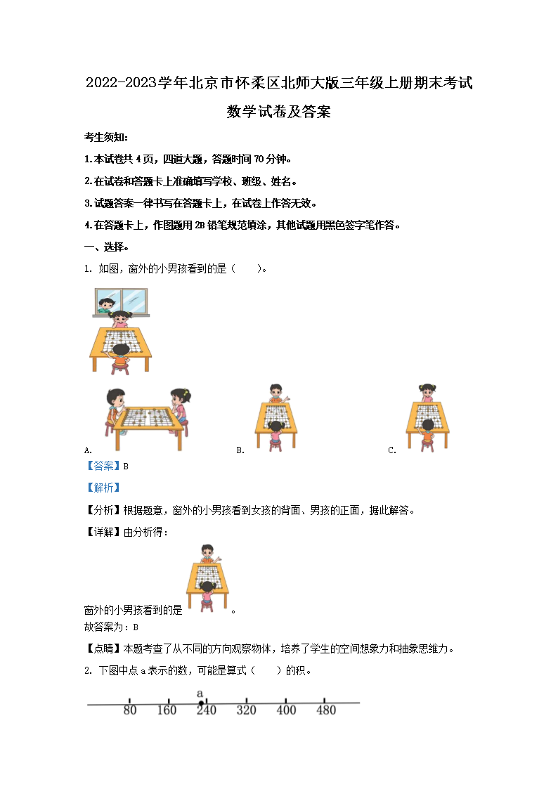 2022-2023学年北京市怀柔区北师大版三年级上册期末考试数学试卷及答案(Word版)06-26