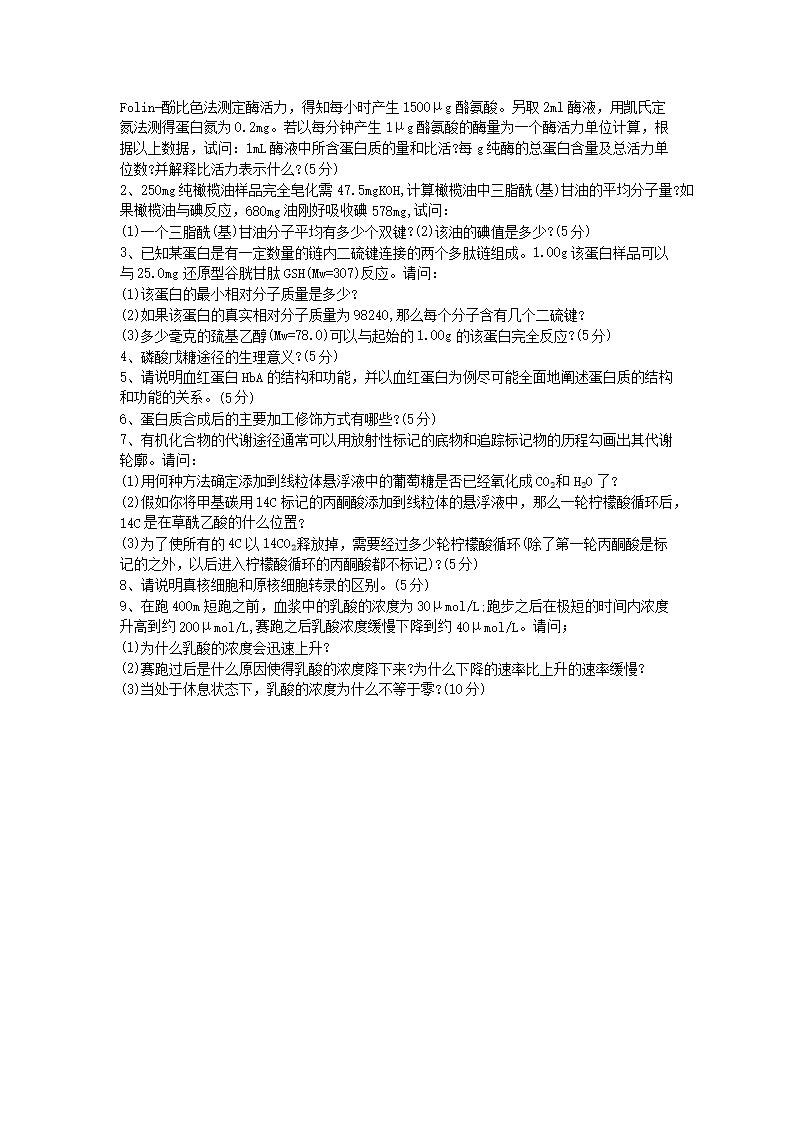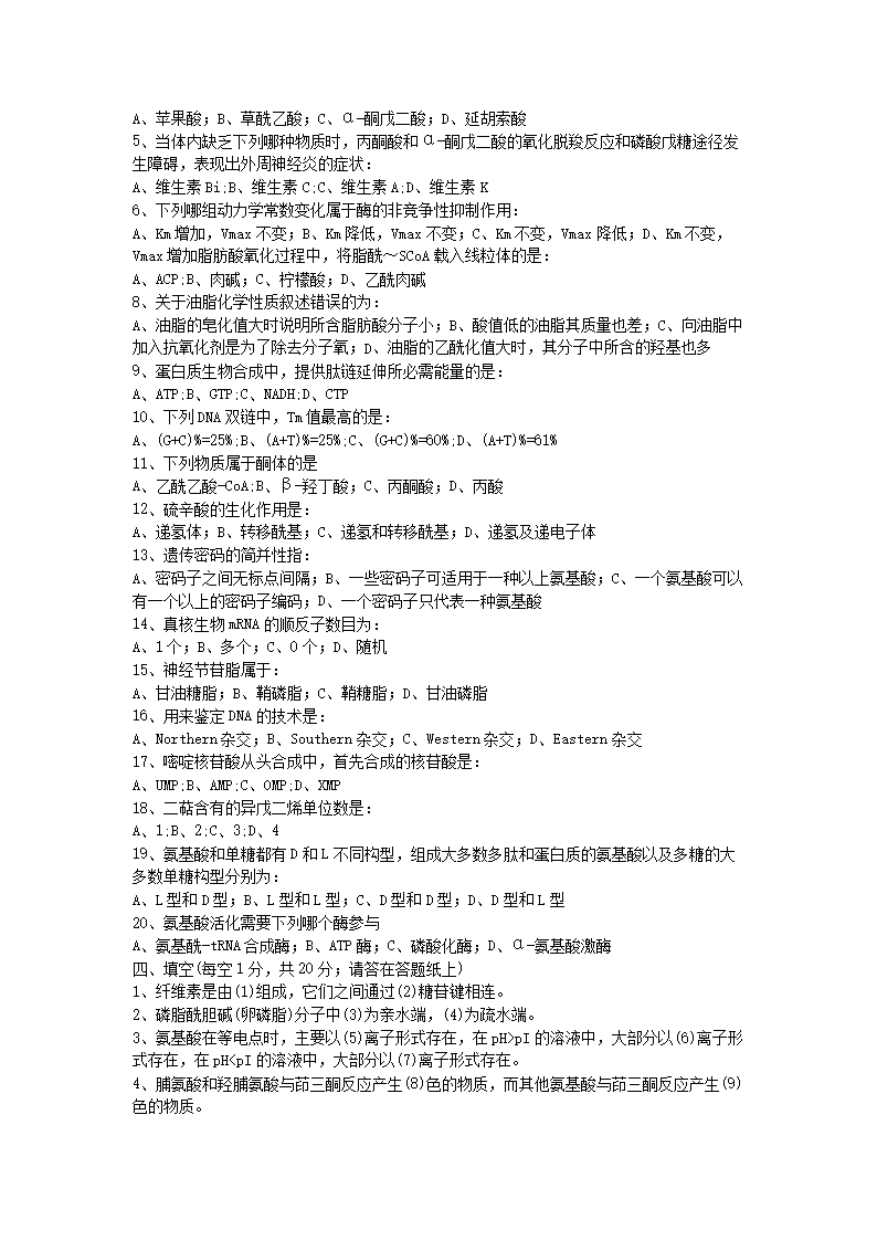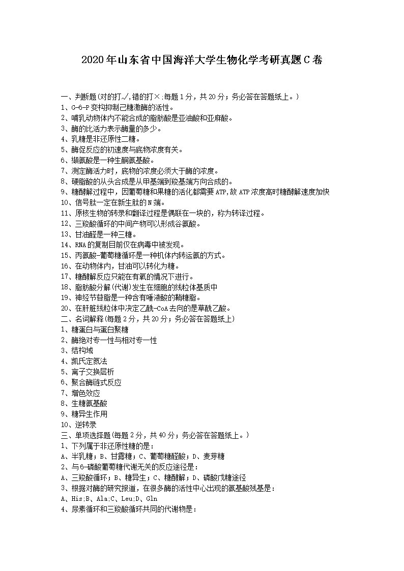 2020年山东省中国海洋大学生物化学考研真题C卷(Word版)06-01