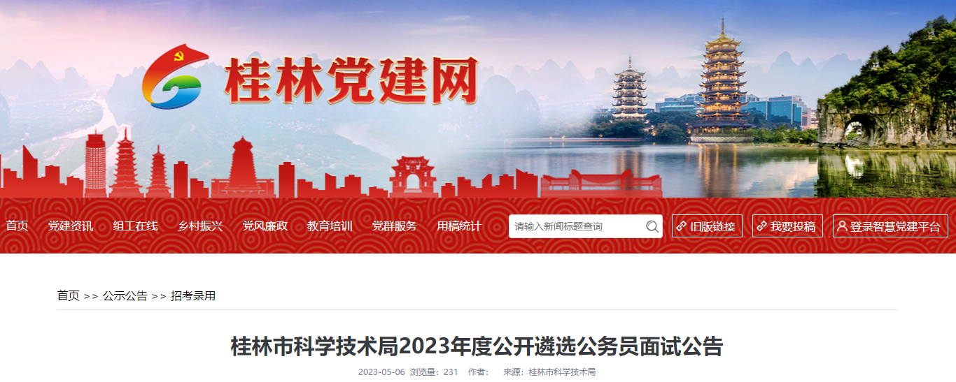 2023年广西桂林市科学技术局公开遴选公务员面试时间:5月13日05-10