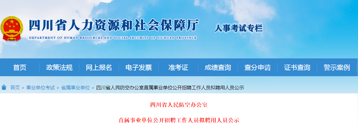 2022年四川省人民防空办公室直属事业单位公开招聘工作人员拟聘用人员公示09-29