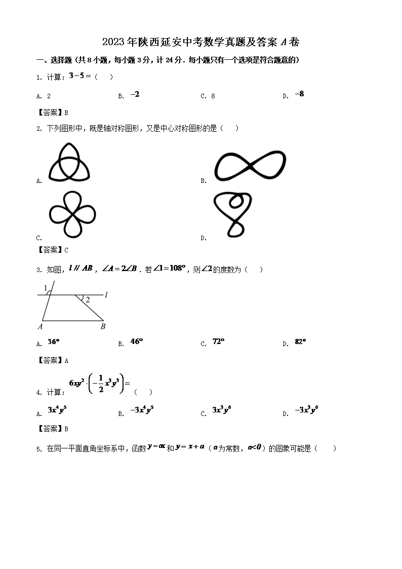 2023年陕西延安中考数学真题及答案A卷(Word版)08-16