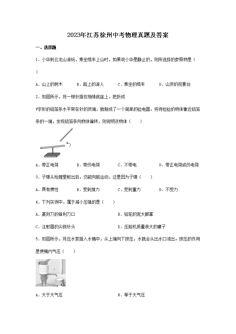 2023年江苏徐州中考物理真题及答案(Word版)10-24