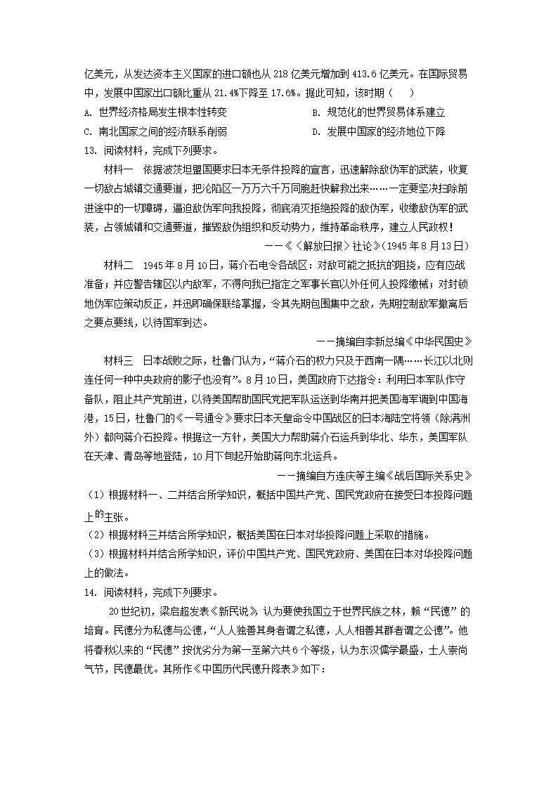 2023年新疆高考历史真题及答案(Word版)06-11