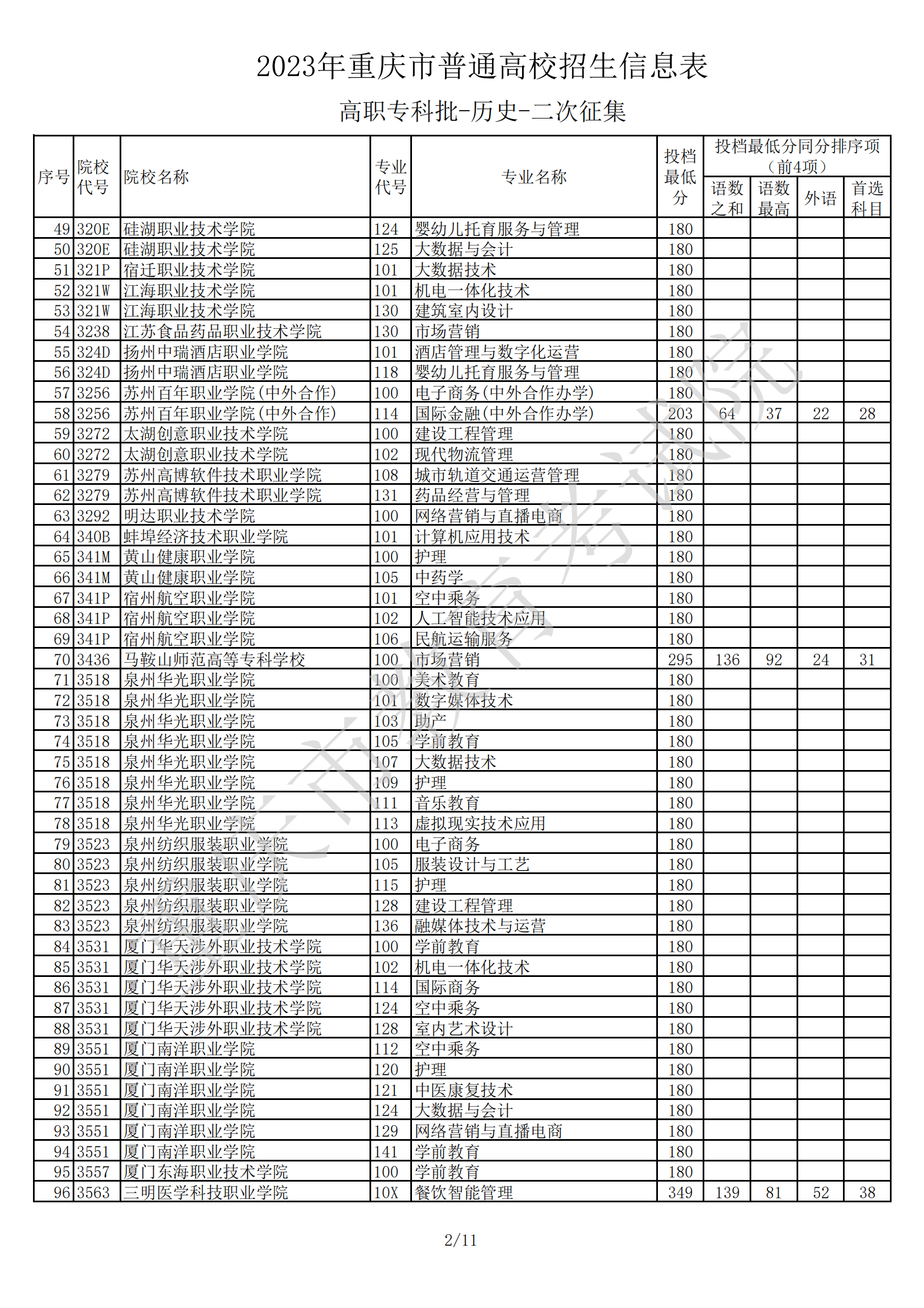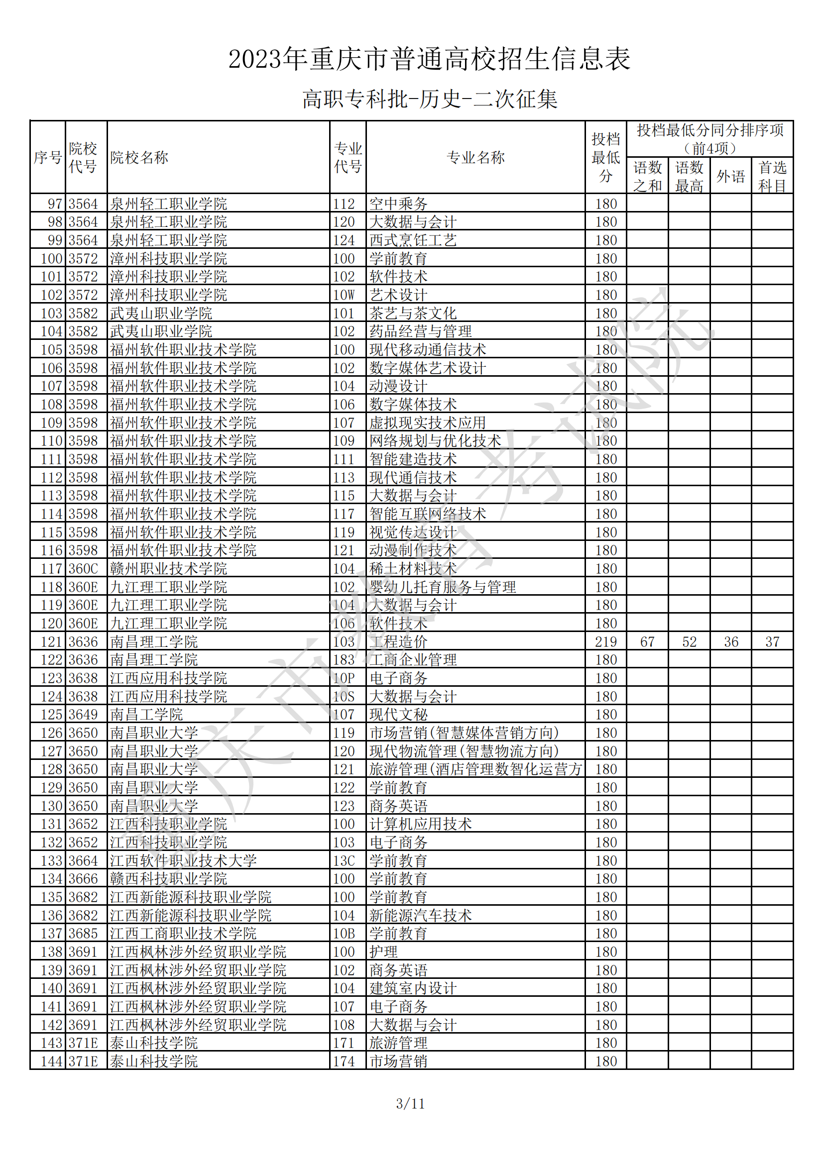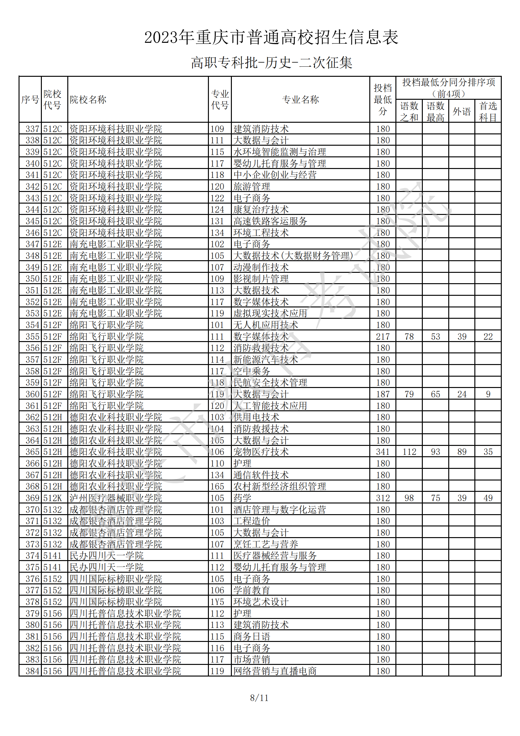 2023年重庆市普通高校招生信息表(高职专科批-历史-二次征集)08-15