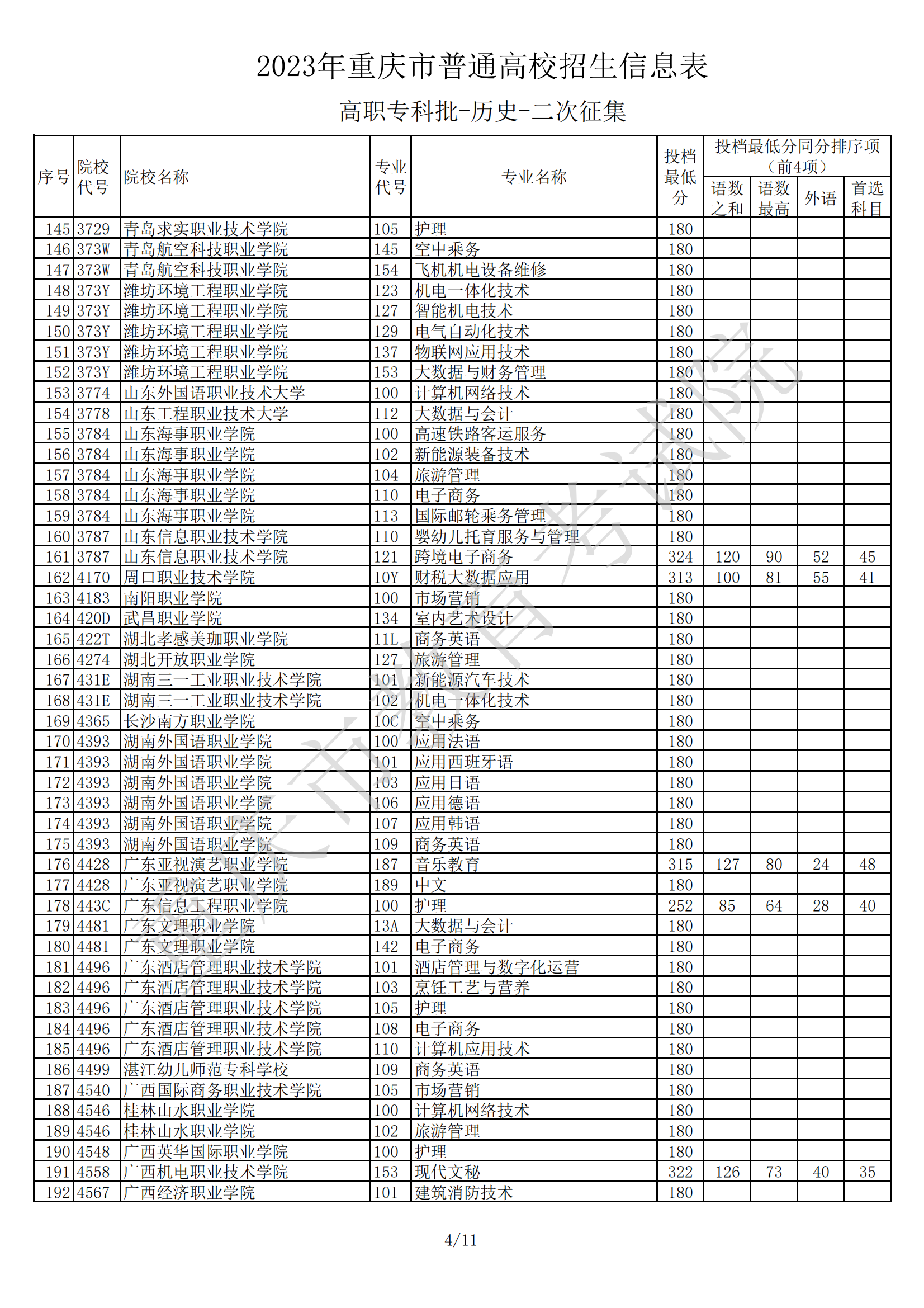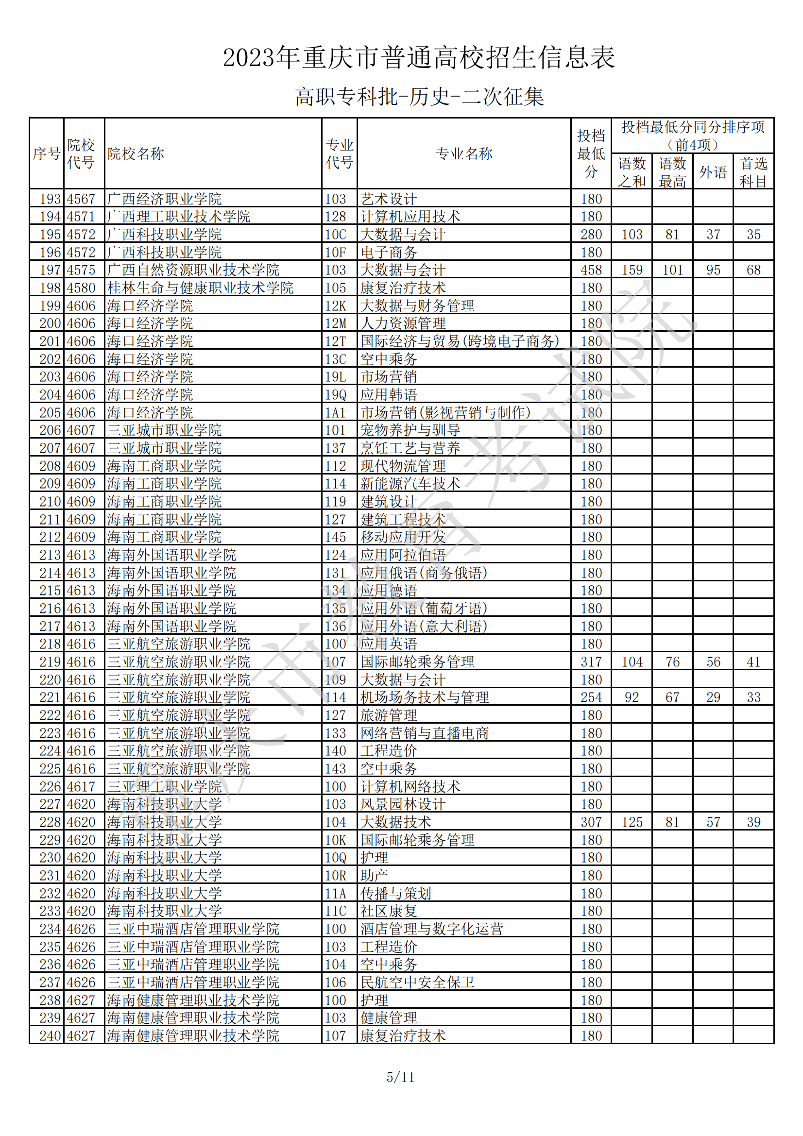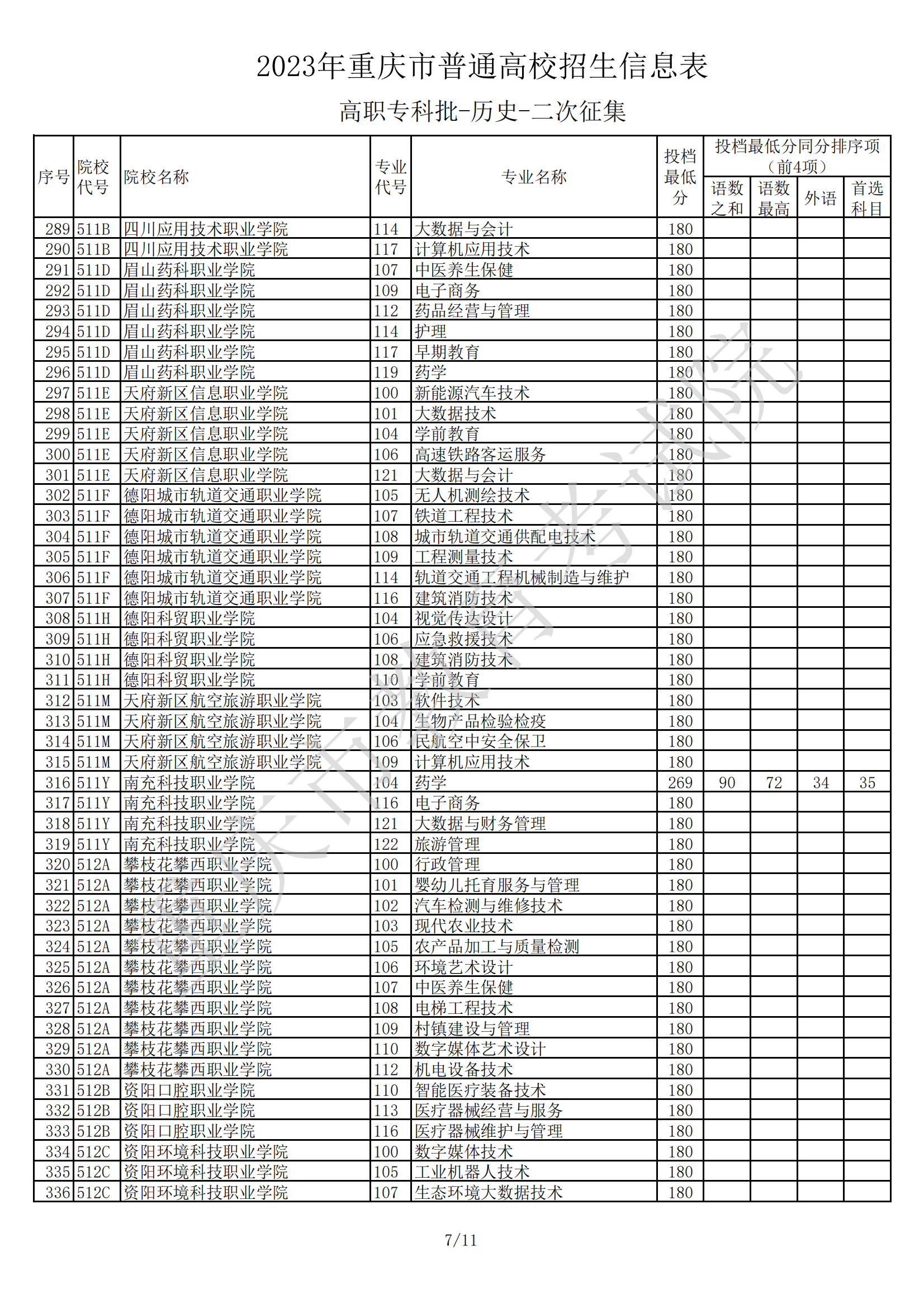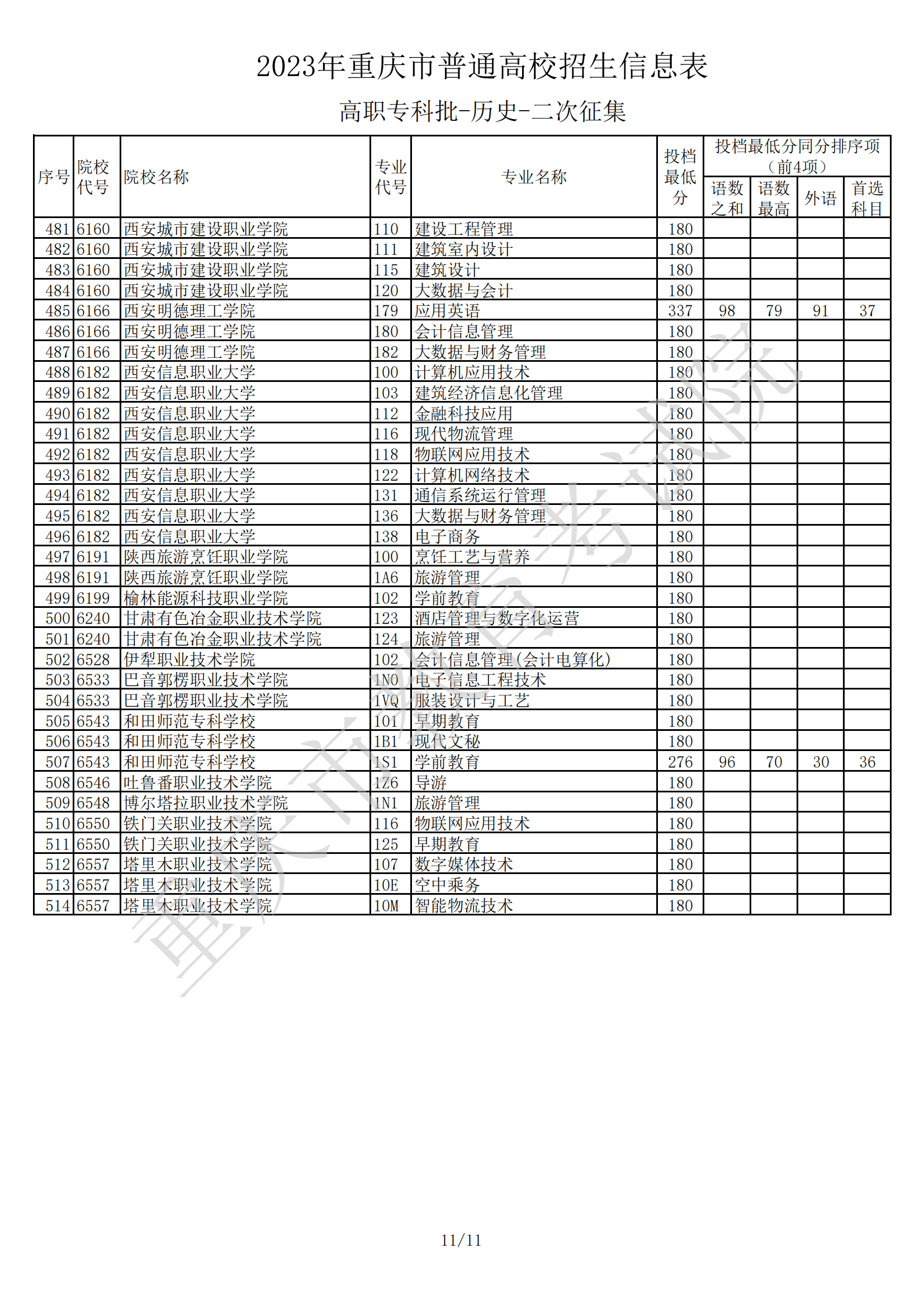 2023年重庆市普通高校招生信息表(高职专科批-历史-二次征集)08-15