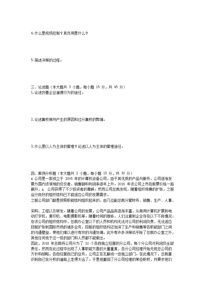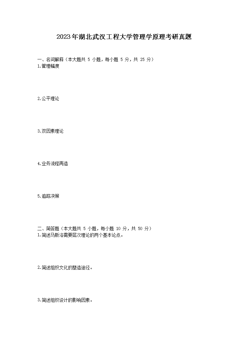 2023年湖北武汉工程大学管理学原理考研真题(Word版)10-14