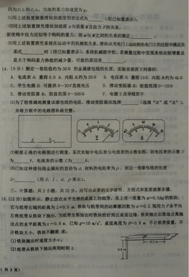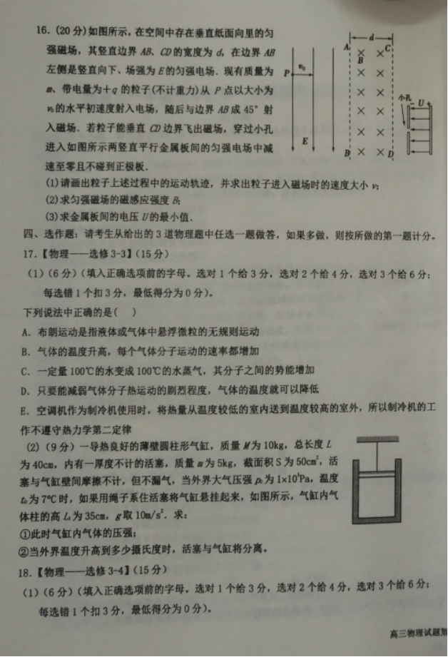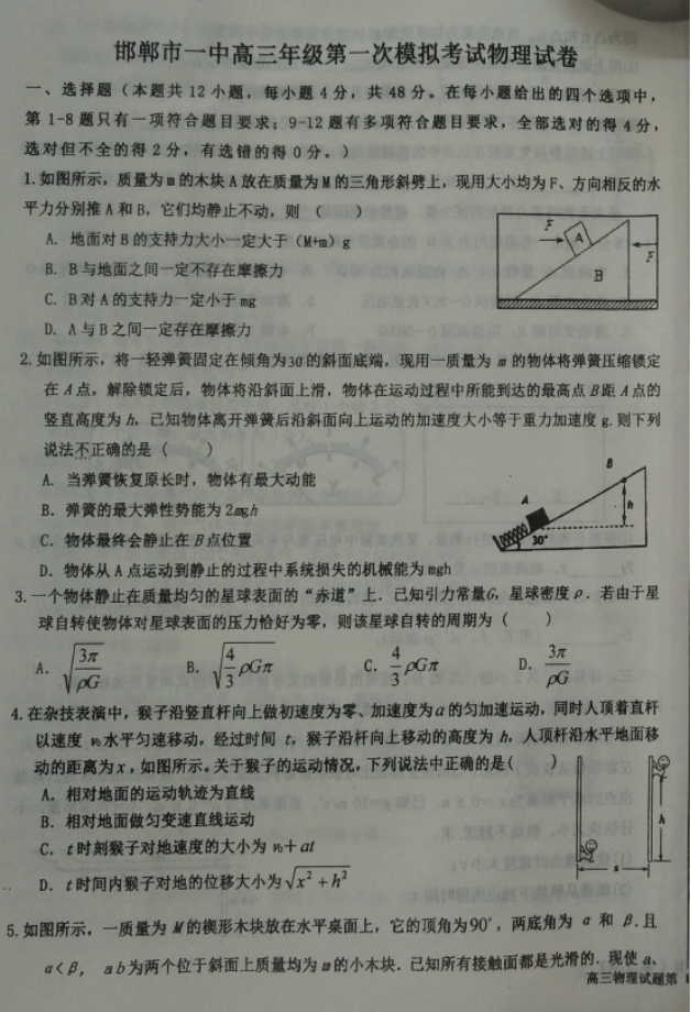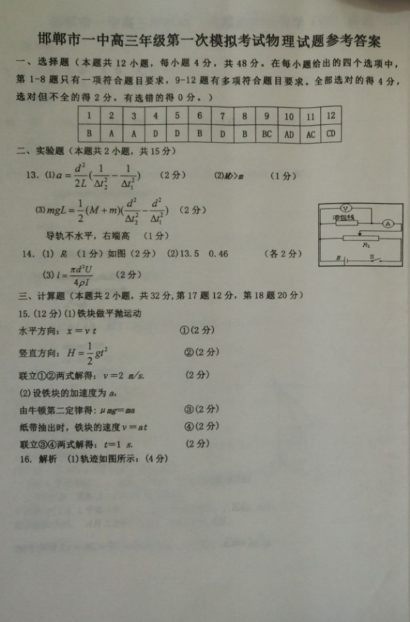 河北2017届高三五个一联盟上学期第一次模拟考试物理试卷02-07