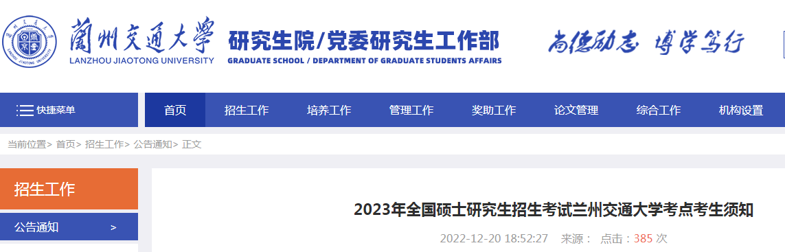 原文标题:2023年全国硕士研究生招生考试兰州交通大学考点考生须知