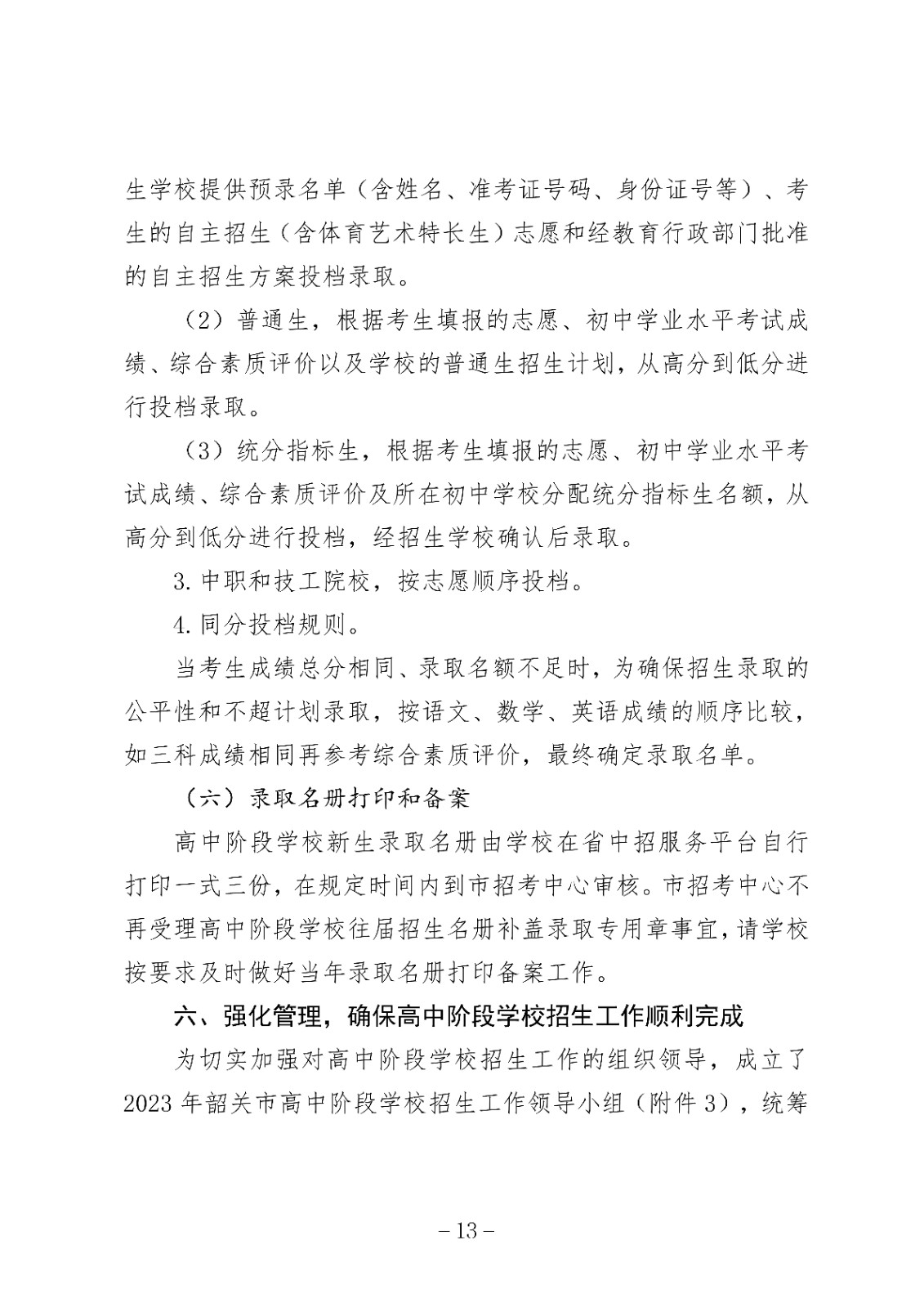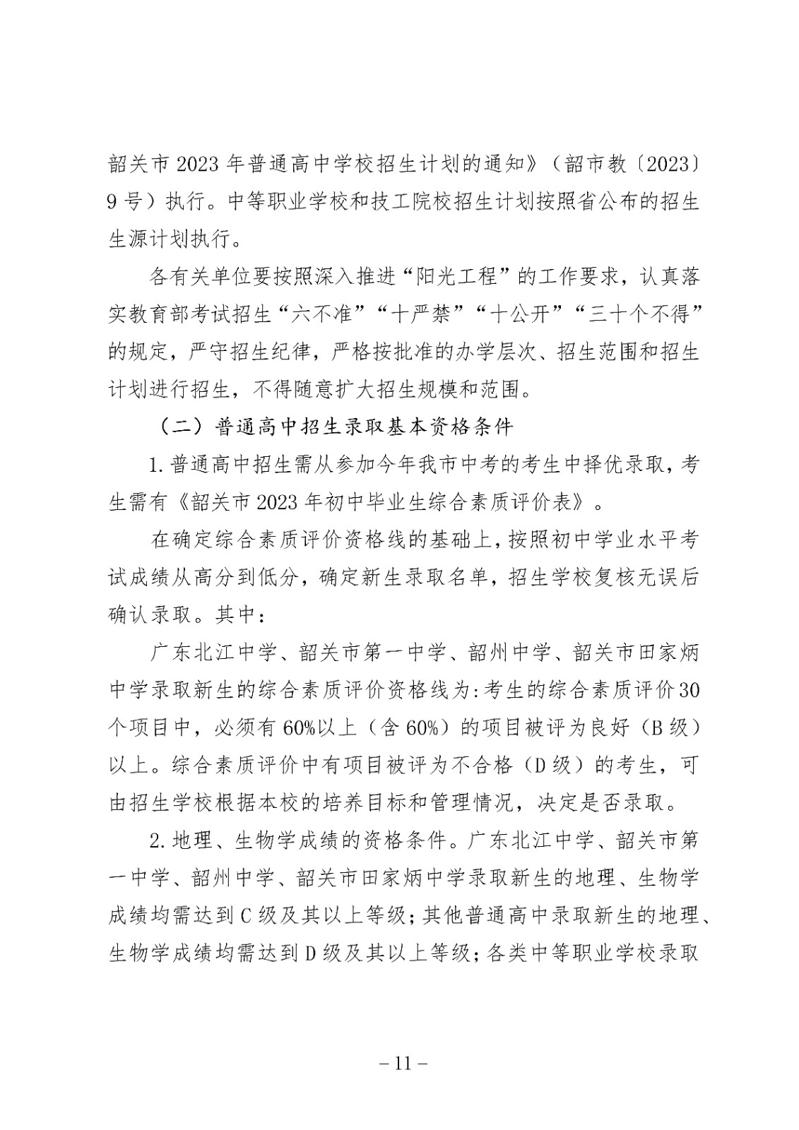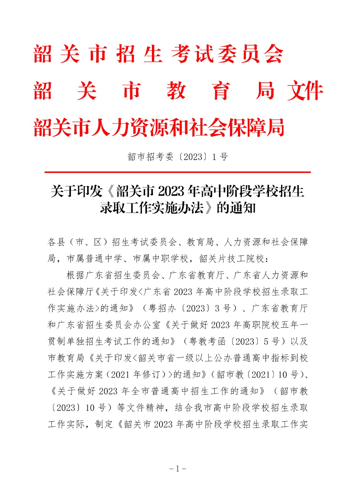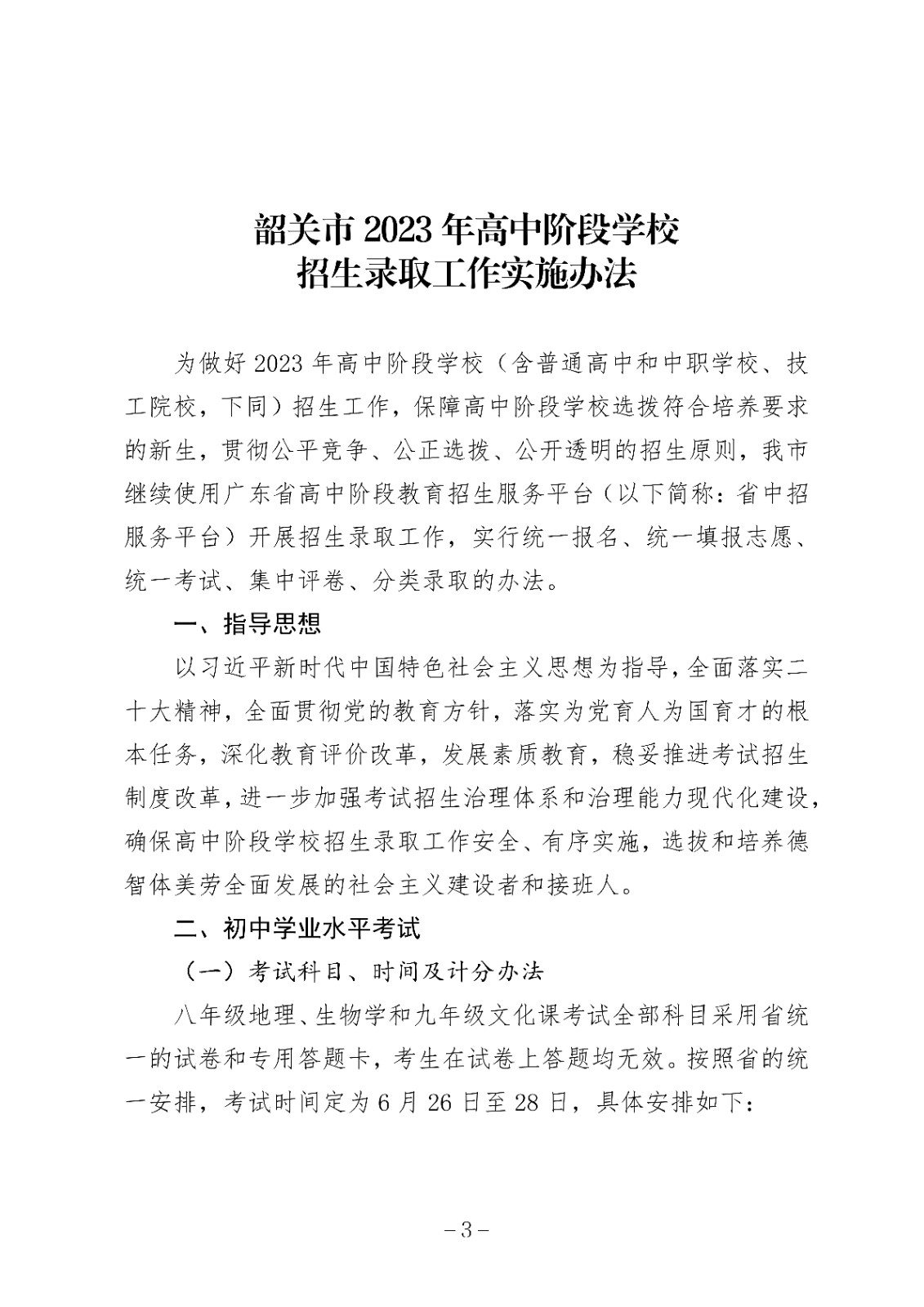 原文标题:关于印发《韶关市2023年高中阶段学校招生录取工作实施办法》的通知
