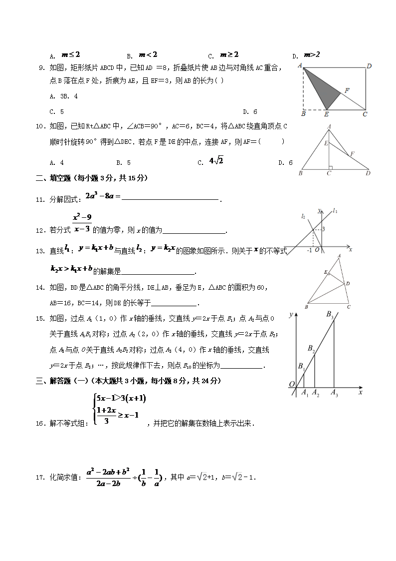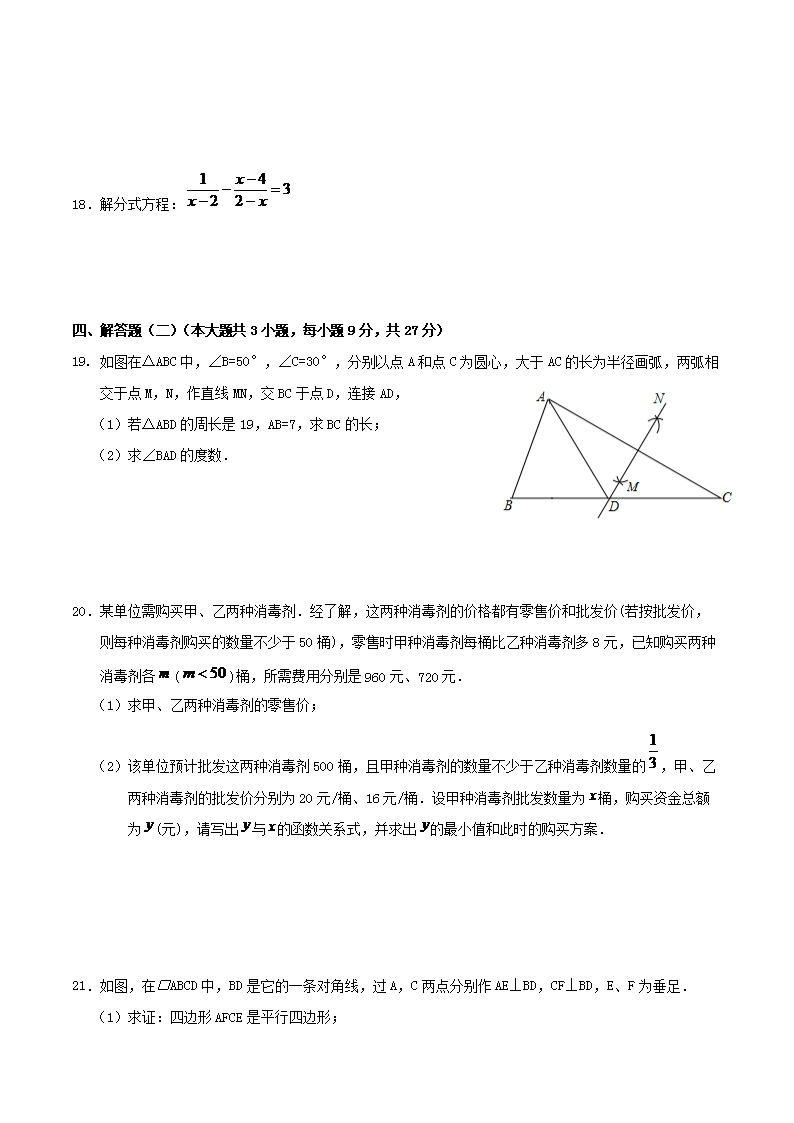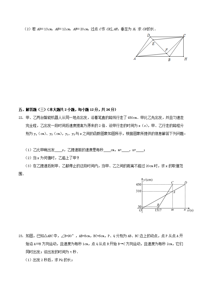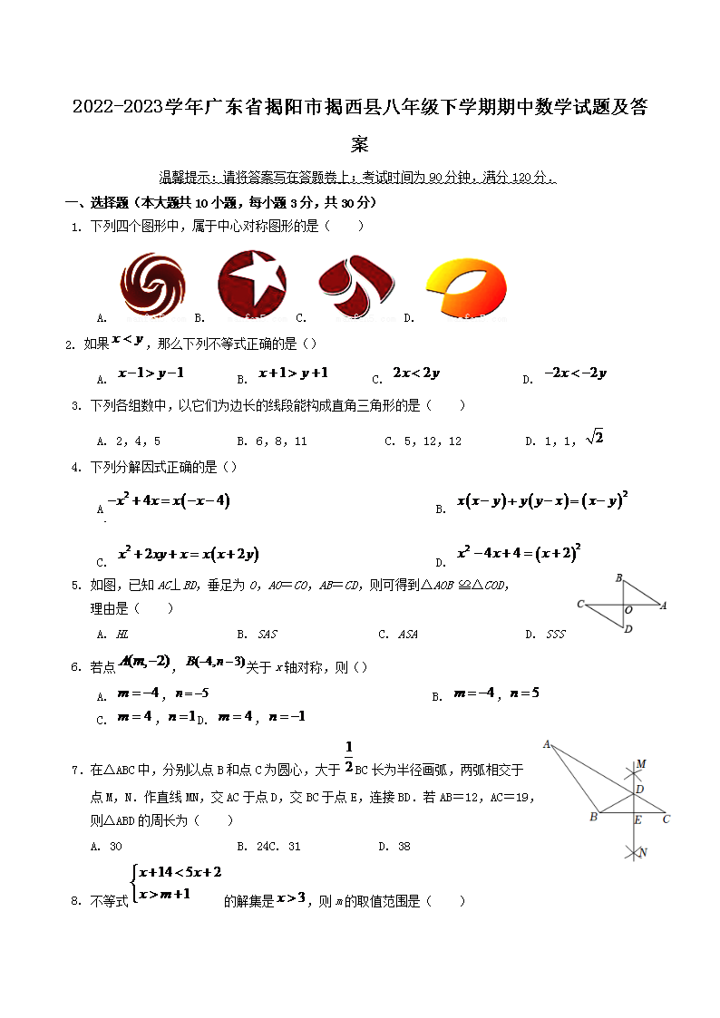 2022-2023学年广东省揭阳市揭西县八年级下学期期中数学试题及答案(Word版)10-12