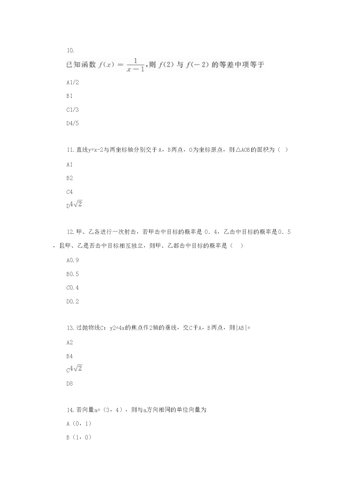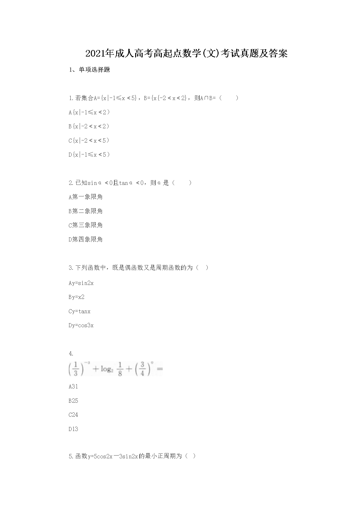 2021年成人高考高起点数学(文)考试真题及答案(Word版)05-27
