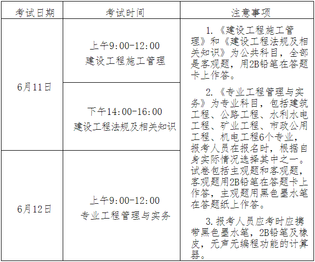 2022年宁夏二级建造师考试时间定于2022年6月11日-12日举行(全国统一),具体科目安排如下: