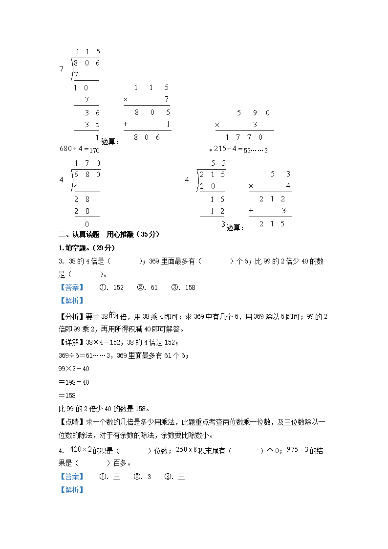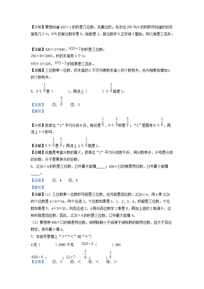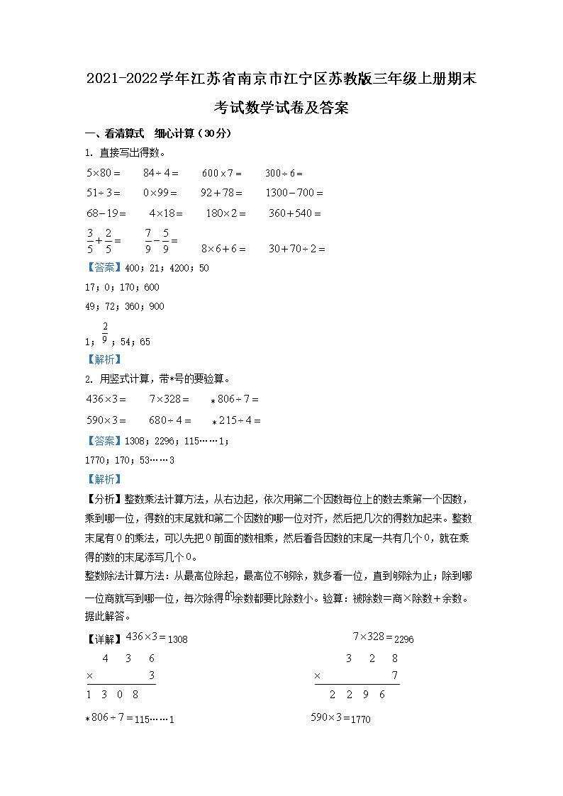 2021-2022学年江苏省南京市江宁区苏教版三年级上册期末考试数学试卷及答案(Word版)07-28