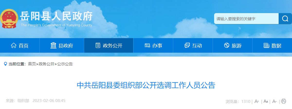 在岳阳县政府门户网、微巴陵微信公众号等相关媒体平台发布选调公告。