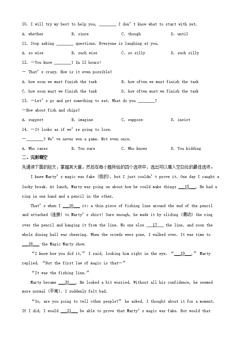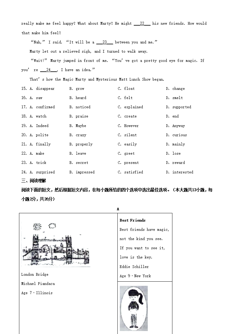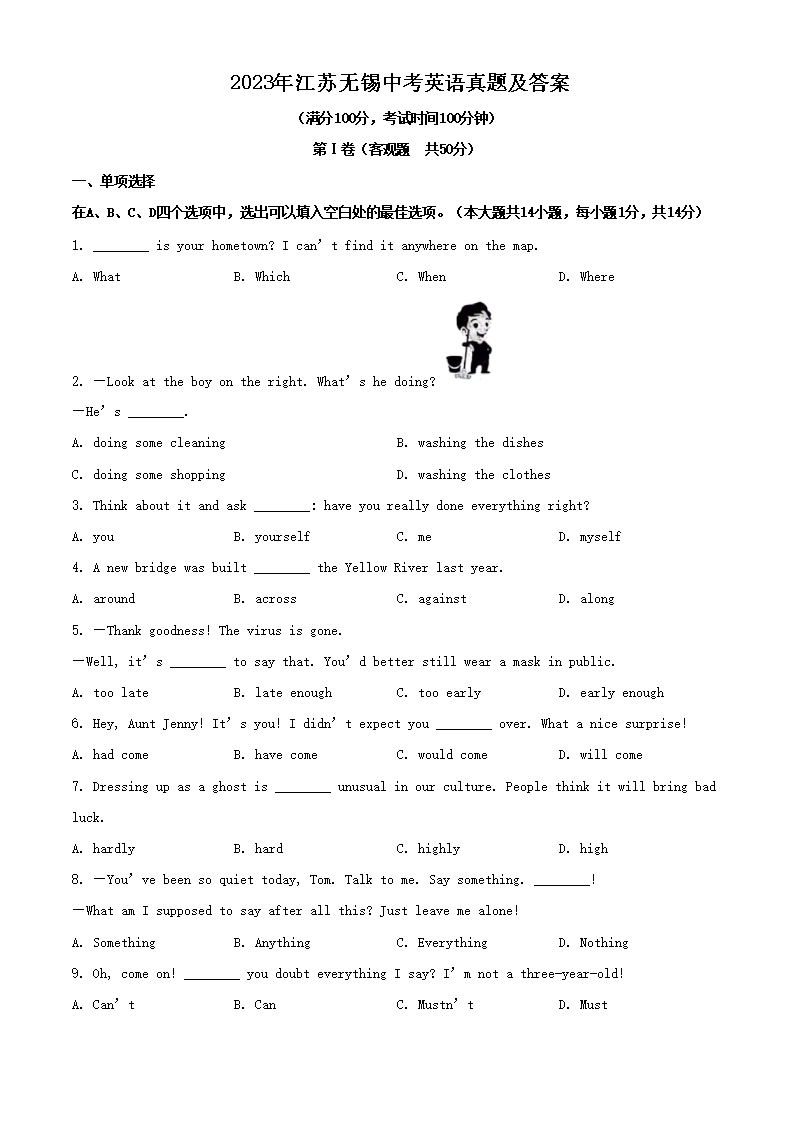 2023年江苏无锡中考英语真题及答案(Word版)10-08