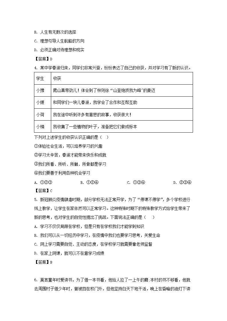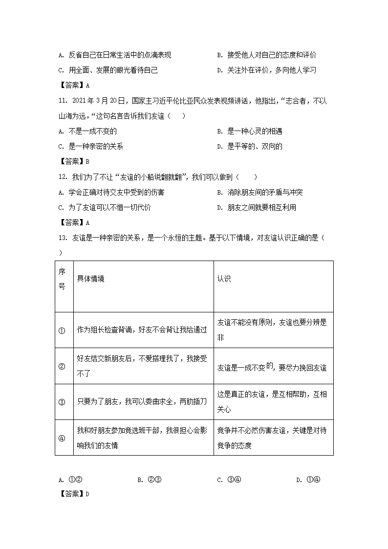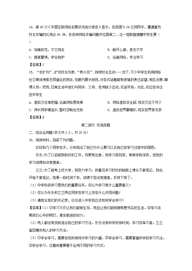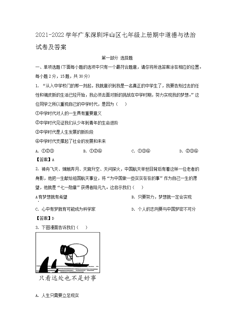 2021-2022学年广东深圳坪山区七年级上册期中道德与法治试卷及答案(Word版)09-16