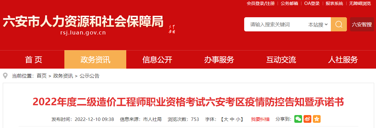 原文标题:2022年度二级造价工程师职业资格考试六安考区疫情防控告知暨书