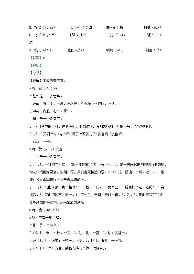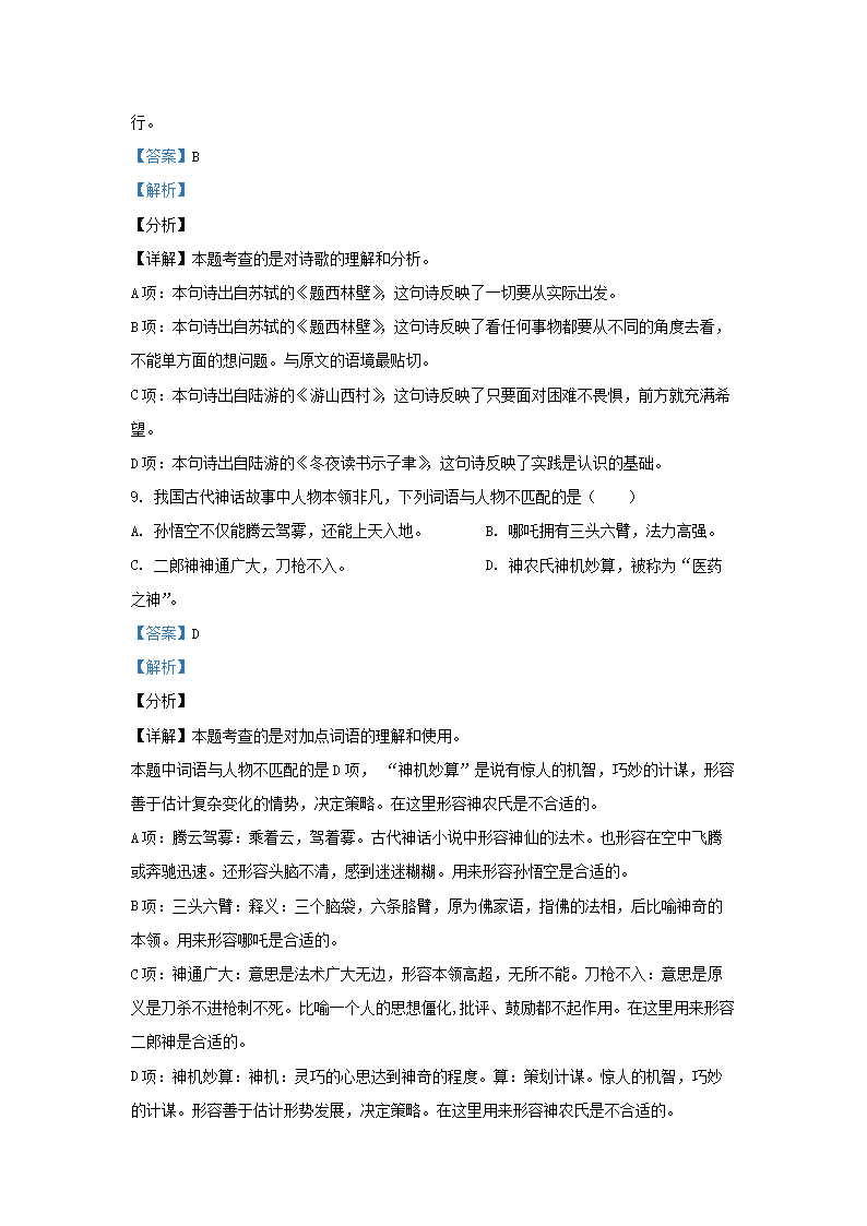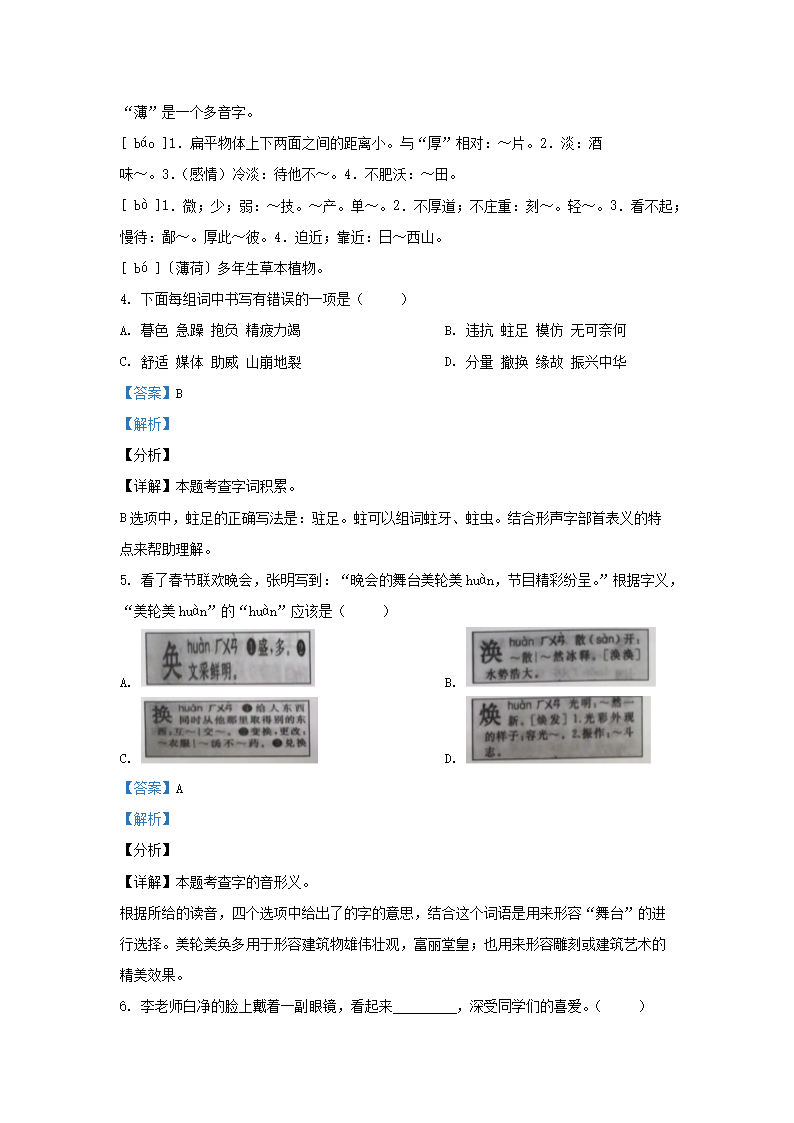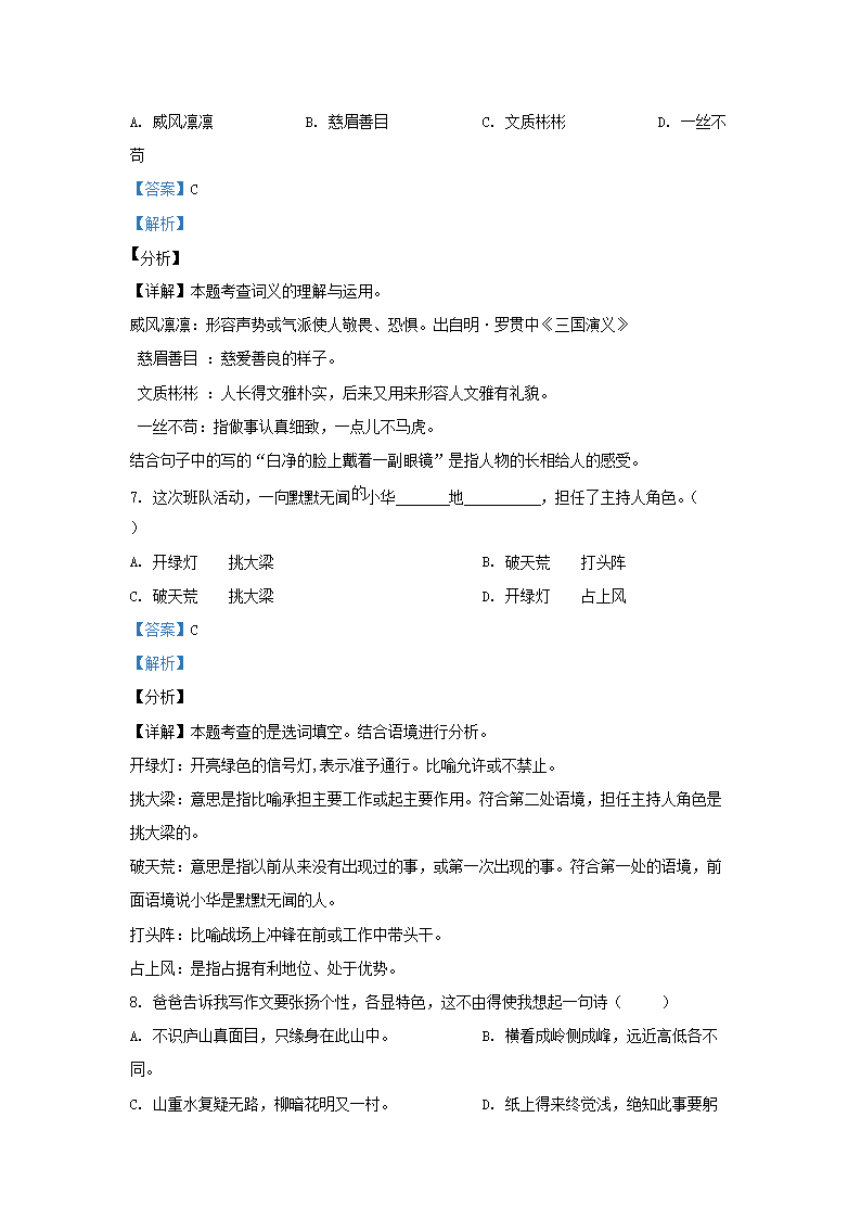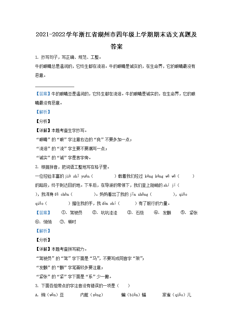 2021-2022学年浙江省湖州市四年级上学期期末语文真题及答案(Word版)09-29