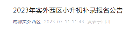 根据成都市教育局《关于做好2023年义务教育招生入学工作的通知》(成教办〔2023〕2号)文件精神,现将2023年成都市实外西区学校小升初补录相关事宜公告如下: