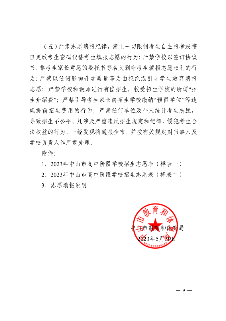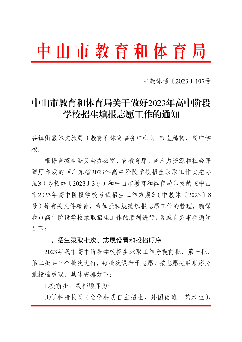 2023年广东中山高中阶段学校招生填报志愿工作的通知06-13