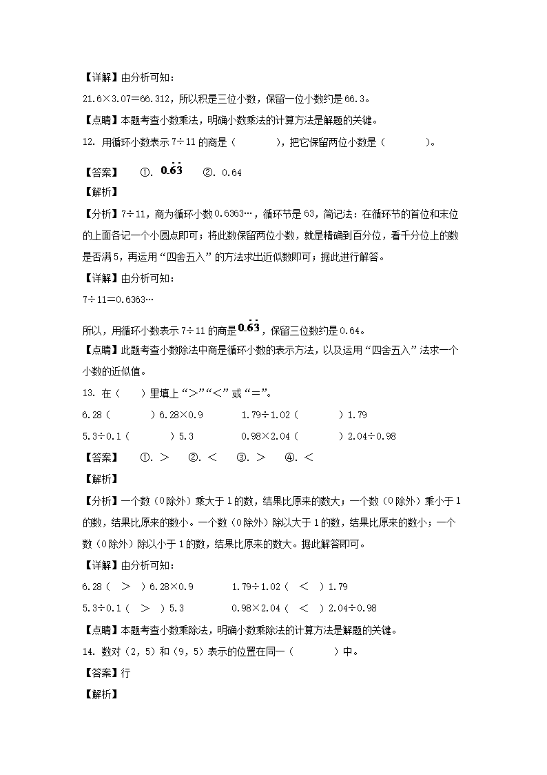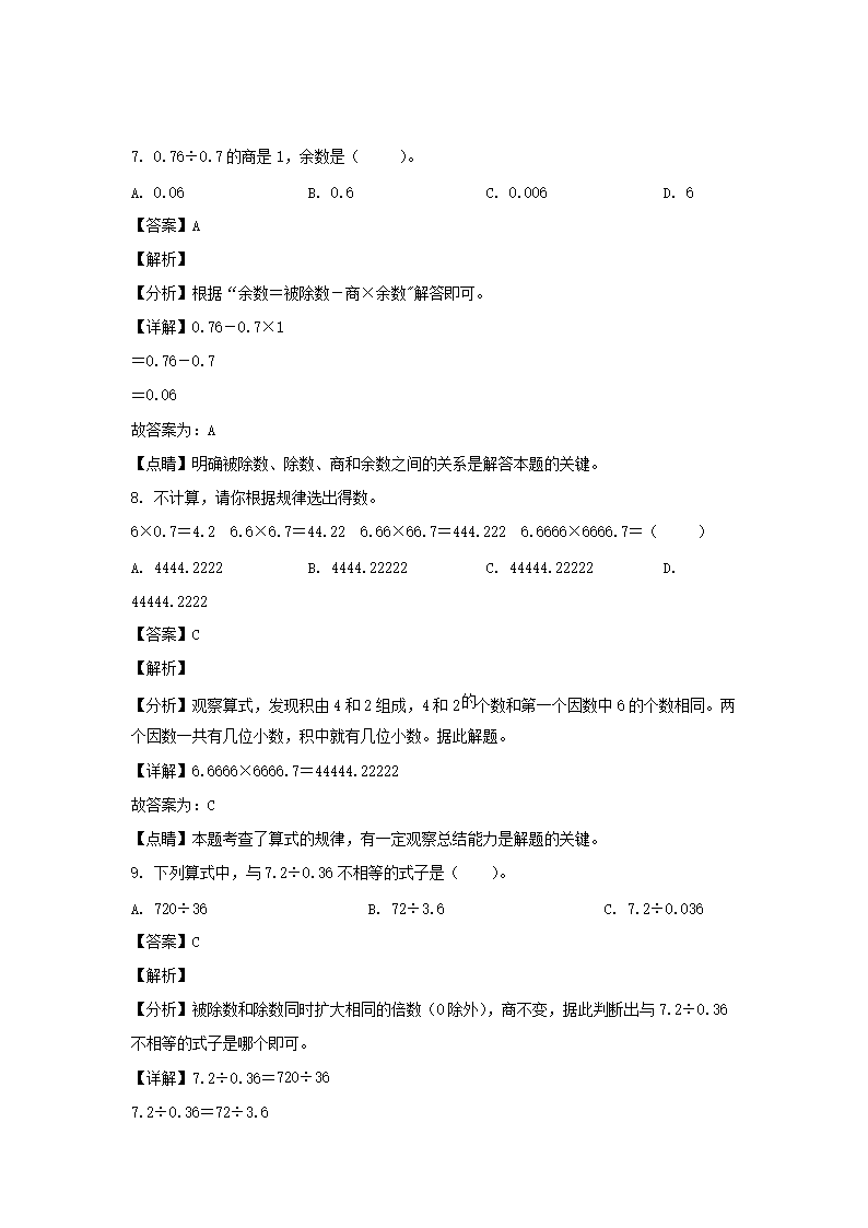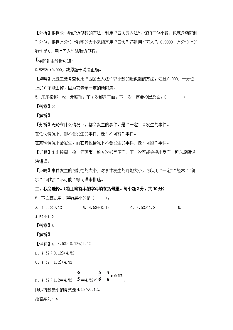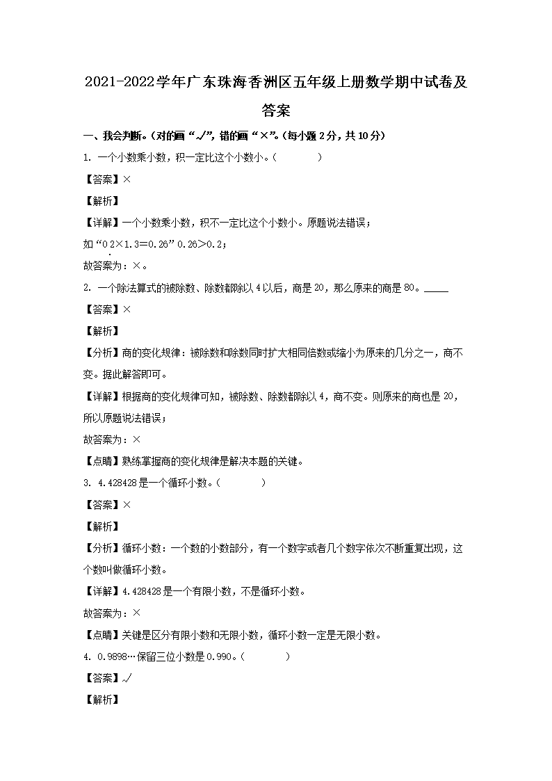 2021-2022学年广东珠海香洲区五年级上册数学期中试卷及答案(Word版)08-31