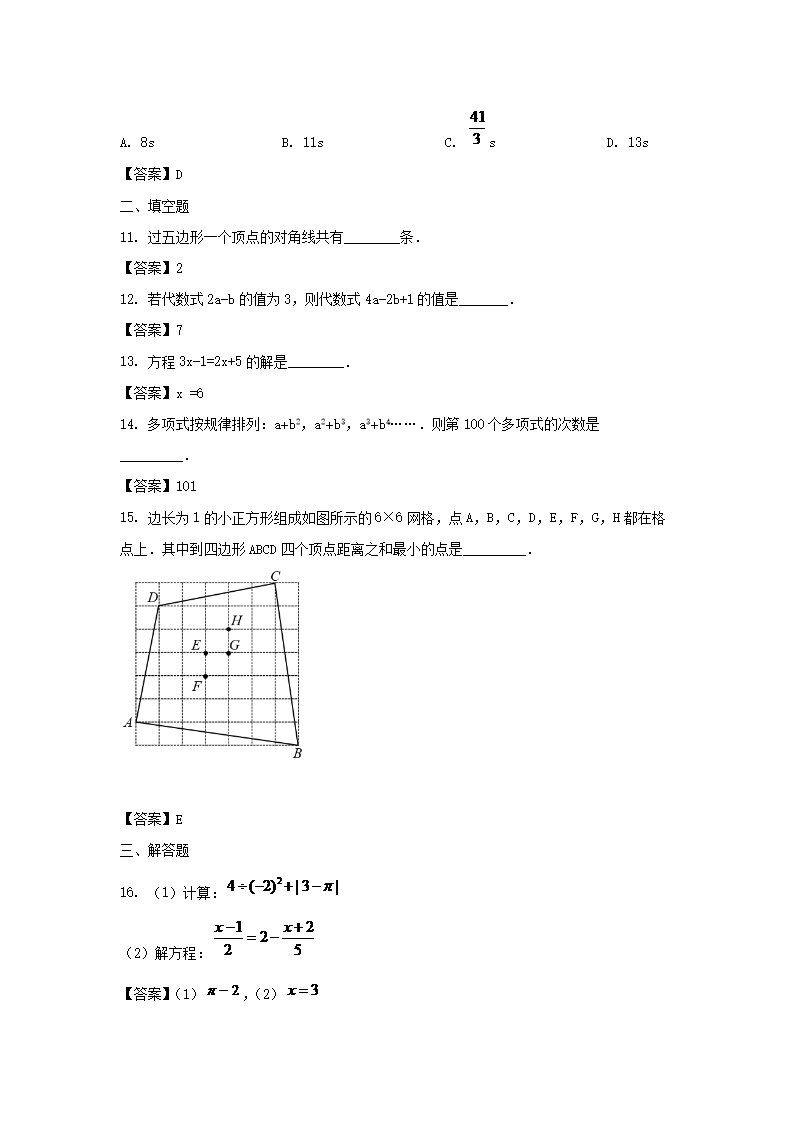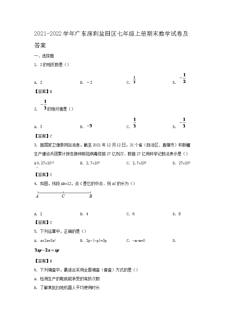 2021-2022学年广东深圳盐田区七年级上册期末数学试卷及答案(Word版)09-23