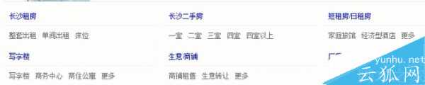 2、 把复杂的东西尽量分成两类,因为两类是最简单的,你分的越简单,你的内容质量会越高,对于权重的提升就越有利,你分的越复杂,用户选择起来就越困难,会无形中增加用户的选择成本。如下图,如果这个网站并没有划分出普通住宅和商业地产两大类,而是直接将7个小类混在一起,那么这个网站是肯定会被扣分的,为什么呢?很简单,分类太混乱,增加了用户的选择成本,但是如果划分了普通住宅和商业地产,就把这7条信息简单的分成了2类,这样用户在选择的时候就会更加的清晰明了,能有效节约用户的选择成本,提升用户体验。