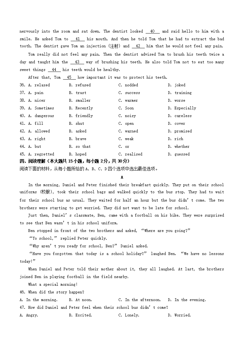 2023年天津和平区中考英语真题及答案(Word版)06-21