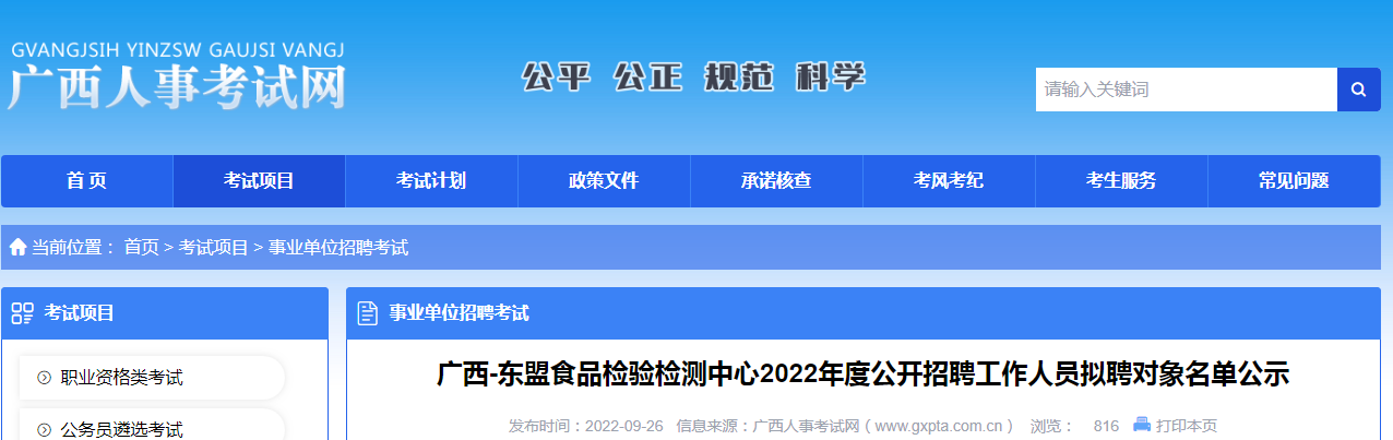 2022年度广西东盟食品检验检测中心公开招聘工作人员拟聘对象名单公示09-28