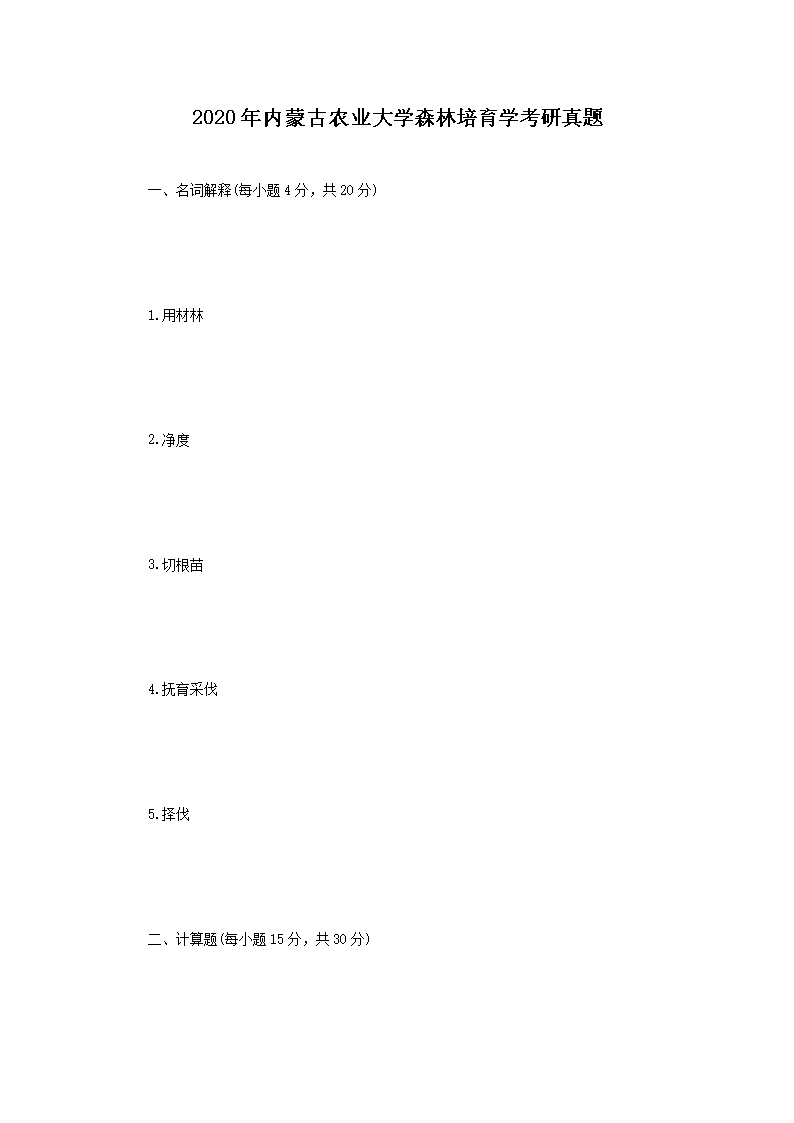 2020年内蒙古农业大学森林培育学考研真题(Word版)07-07