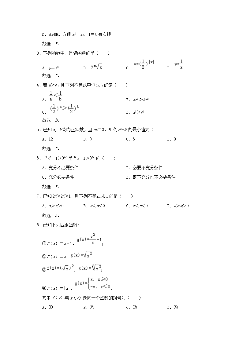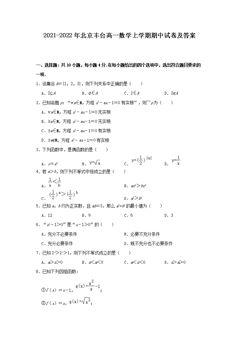 2021-2022年北京丰台高一数学上学期期中试卷及答案(Word版)10-24