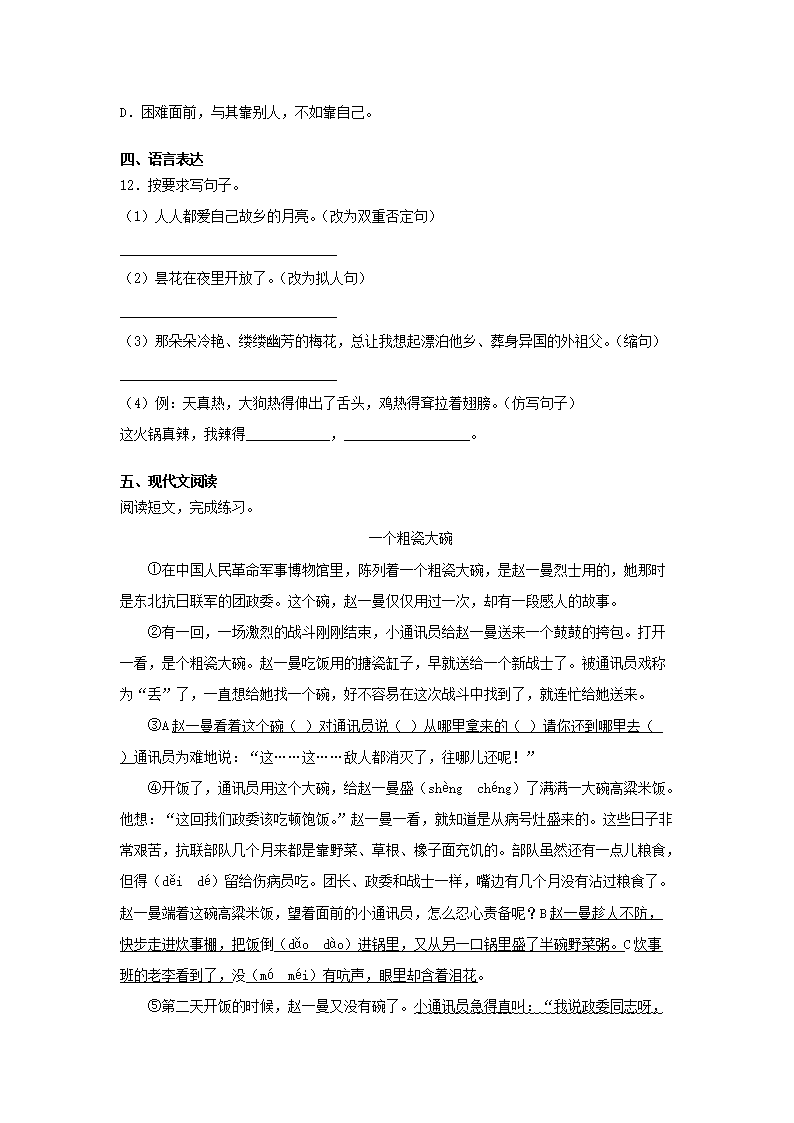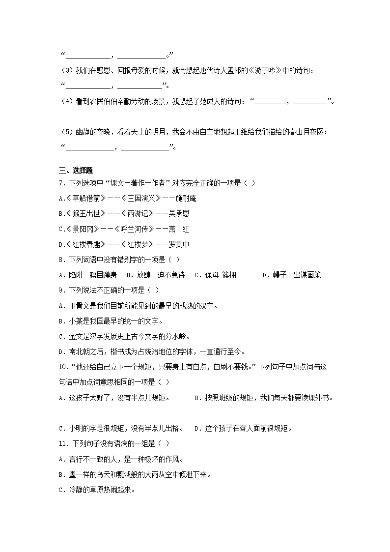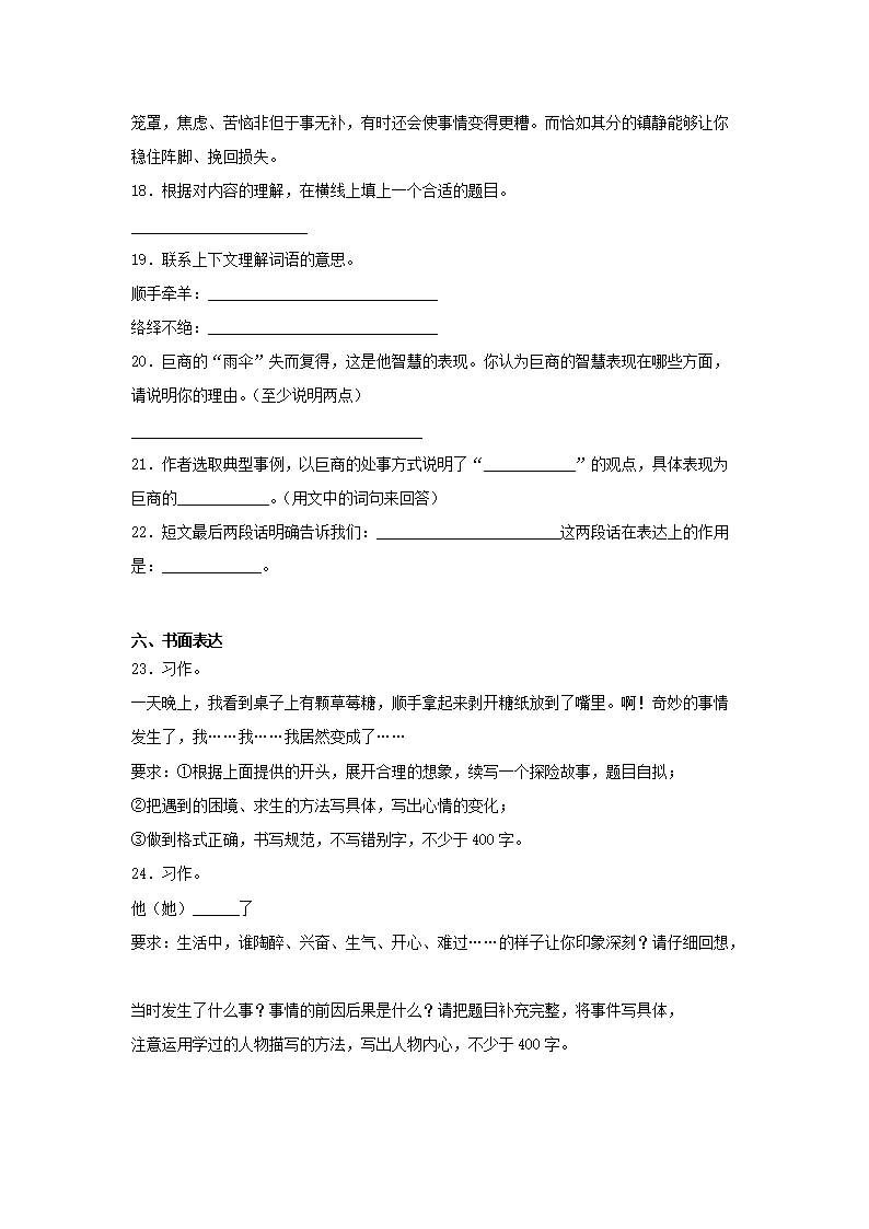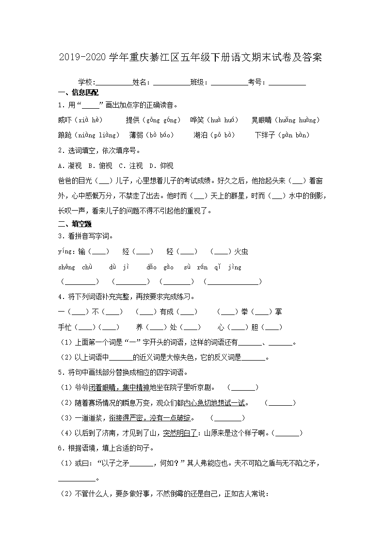 2019-2020学年重庆綦江区五年级下册语文期末试卷及答案(Word版)07-29