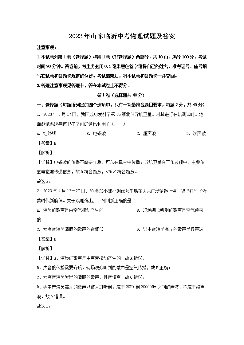 2023年山东临沂中考物理试题及答案(Word版)06-21