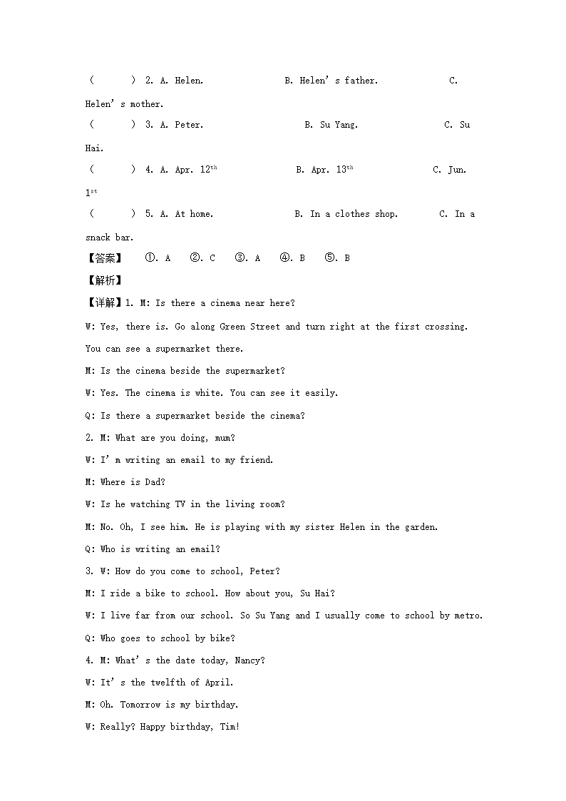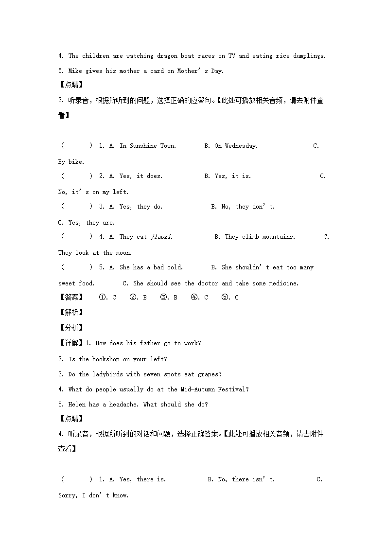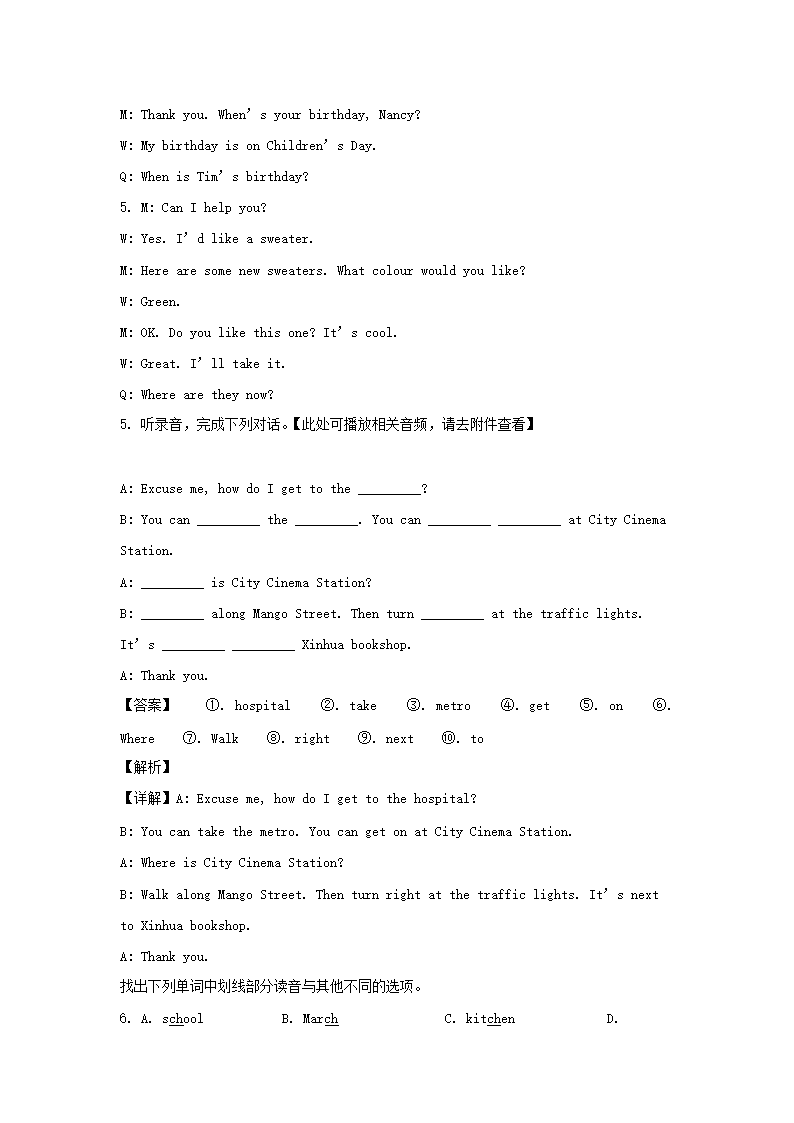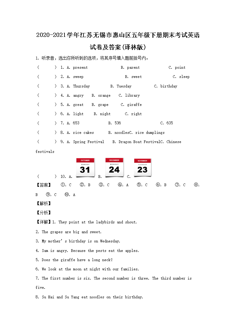 2020-2021学年江苏无锡市惠山区五年级下册期末考试英语试卷及答案(译林版)(Word版)09-22