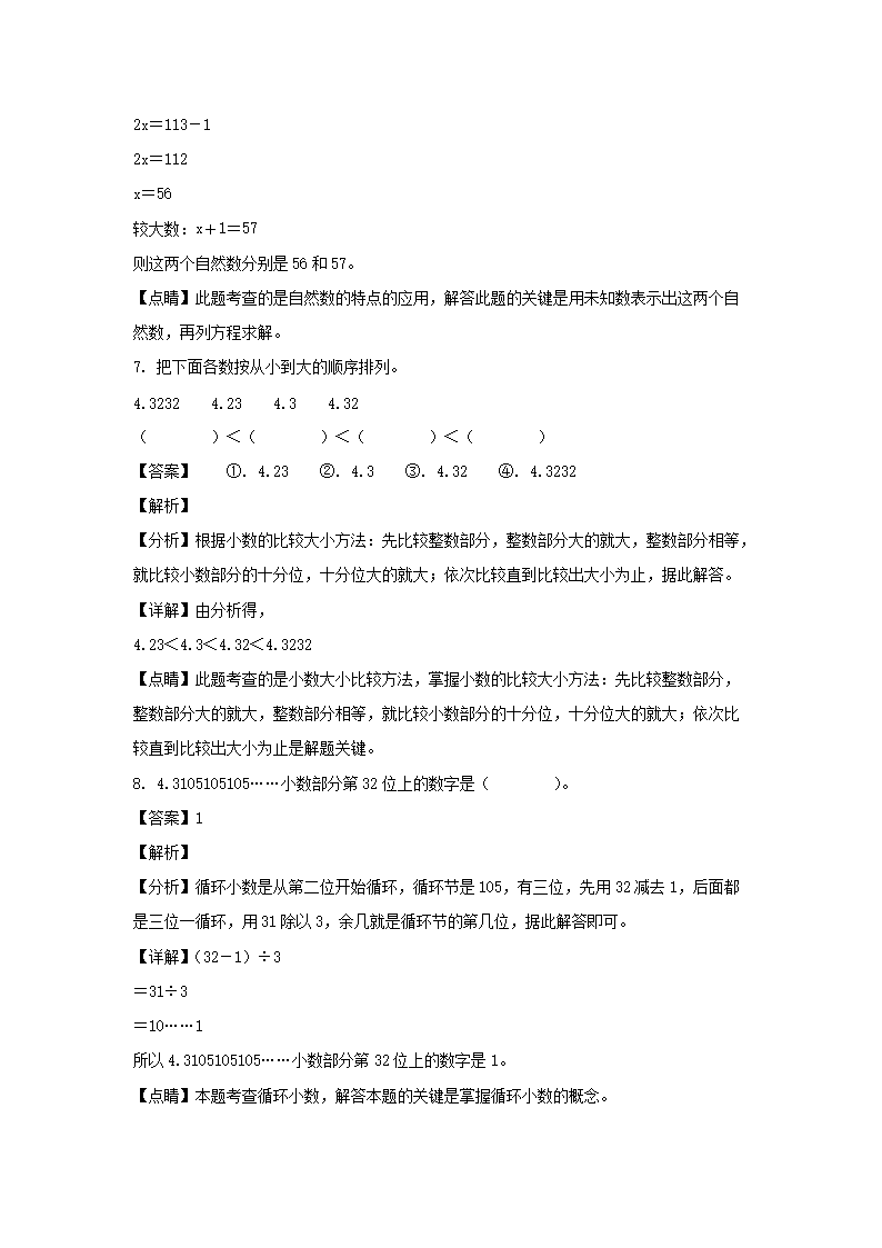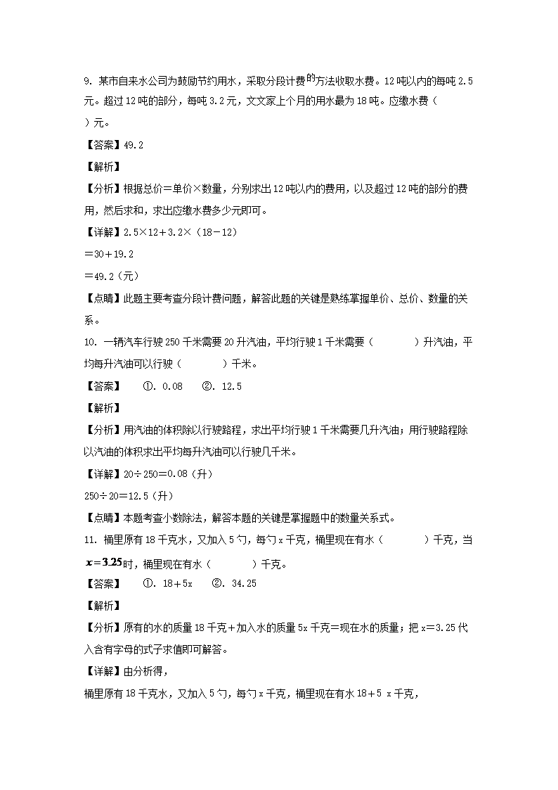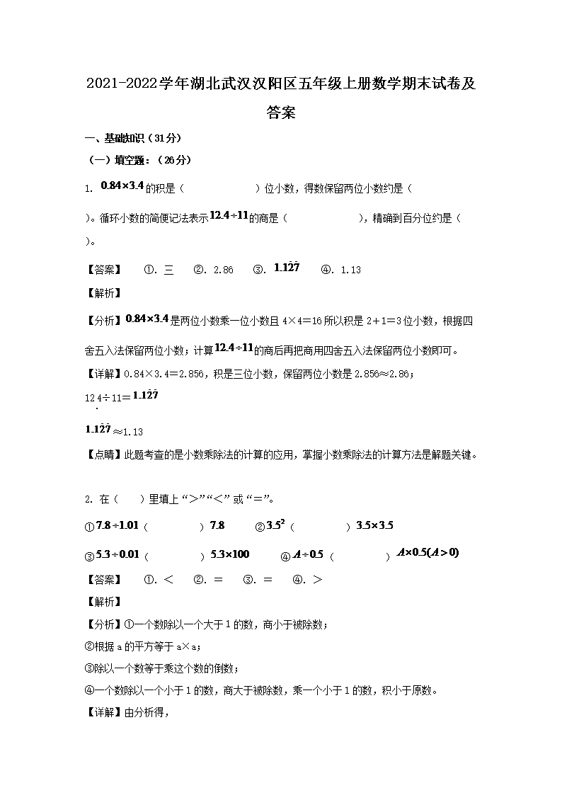 2021-2022学年湖北武汉汉阳区五年级上册数学期末试卷及答案(Word版)09-07