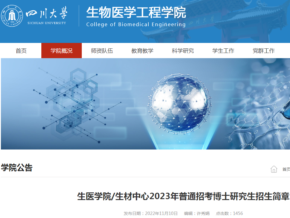 四川大学生医学院/生材中心2023年普通招考博士研究生招生简章11-16