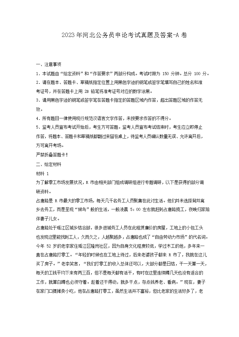 【文档预览】 文档大全网整理发布2023年河北公务员申论考试真题及答案-A卷(Word版),前五页预览如下: