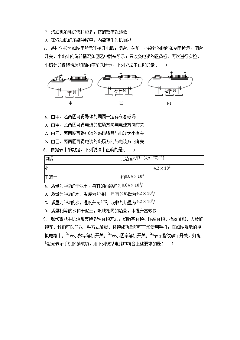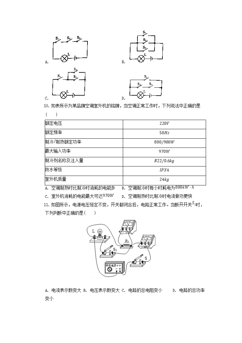 2021-2022学年北京朝阳区初三第一学期物理期末试卷及答案(Word版)07-13