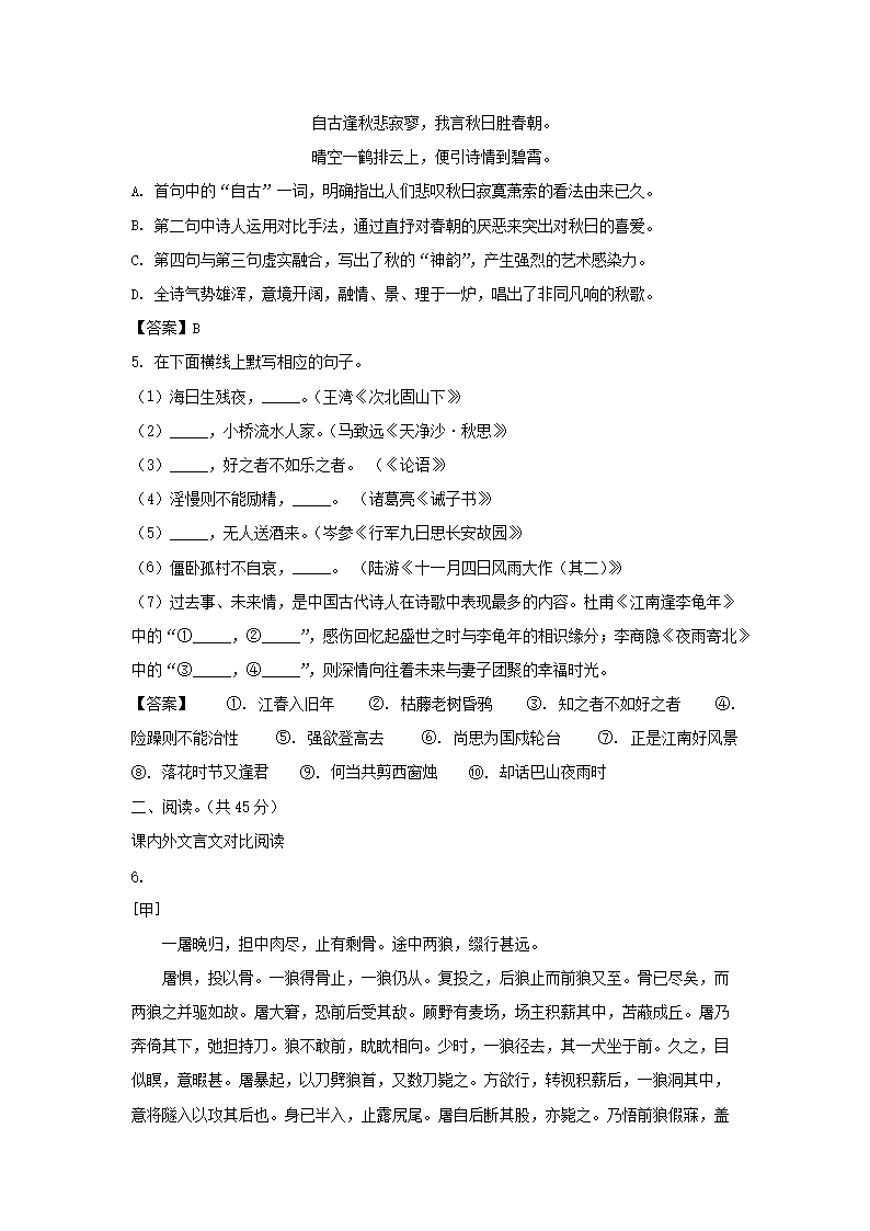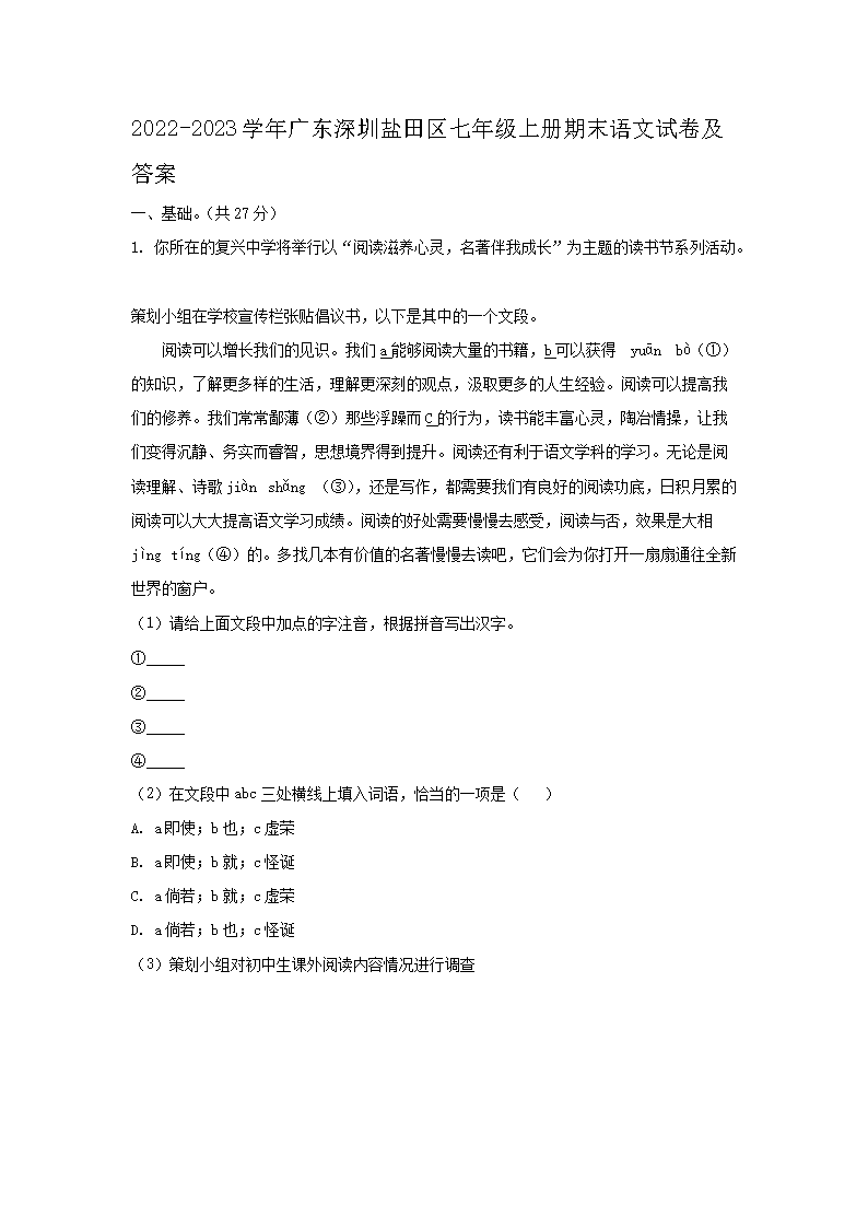 2022-2023学年广东深圳盐田区七年级上册期末语文试卷及答案(Word版)09-28