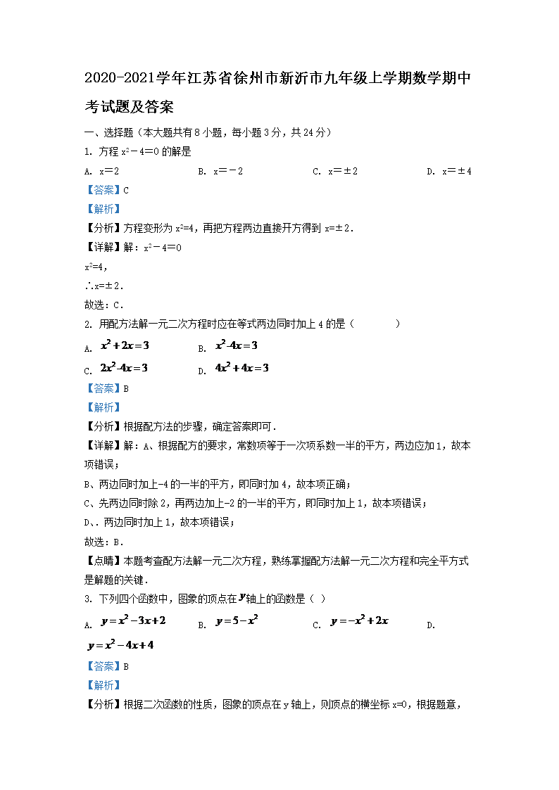 2020-2021学年江苏省徐州市新沂市九年级上学期数学期中考试题及答案(Word版)09-29