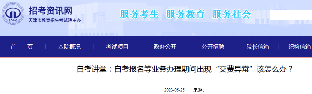 2023年天津市自考报名等业务办理期间出现“交费异常”的解决公告05-27