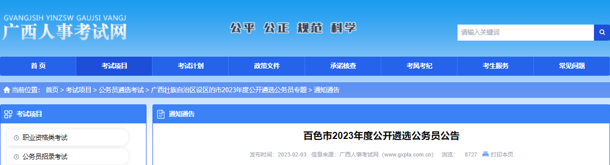面试公告在百色人才网(bs.gxrc.com)、百色党建网(www.bsdjw.gov.cn)发布,发布面试公告时间为面试前一周。
