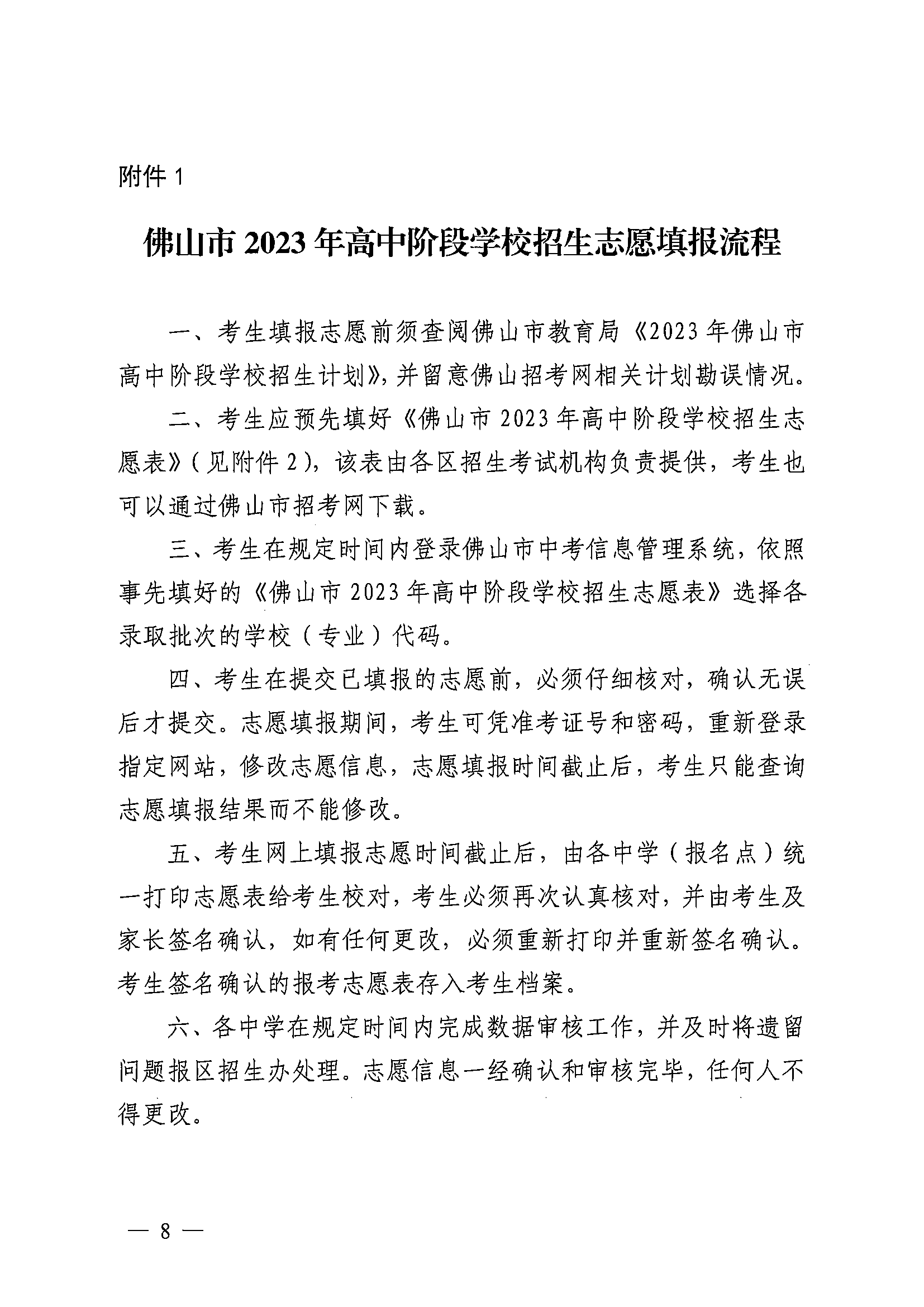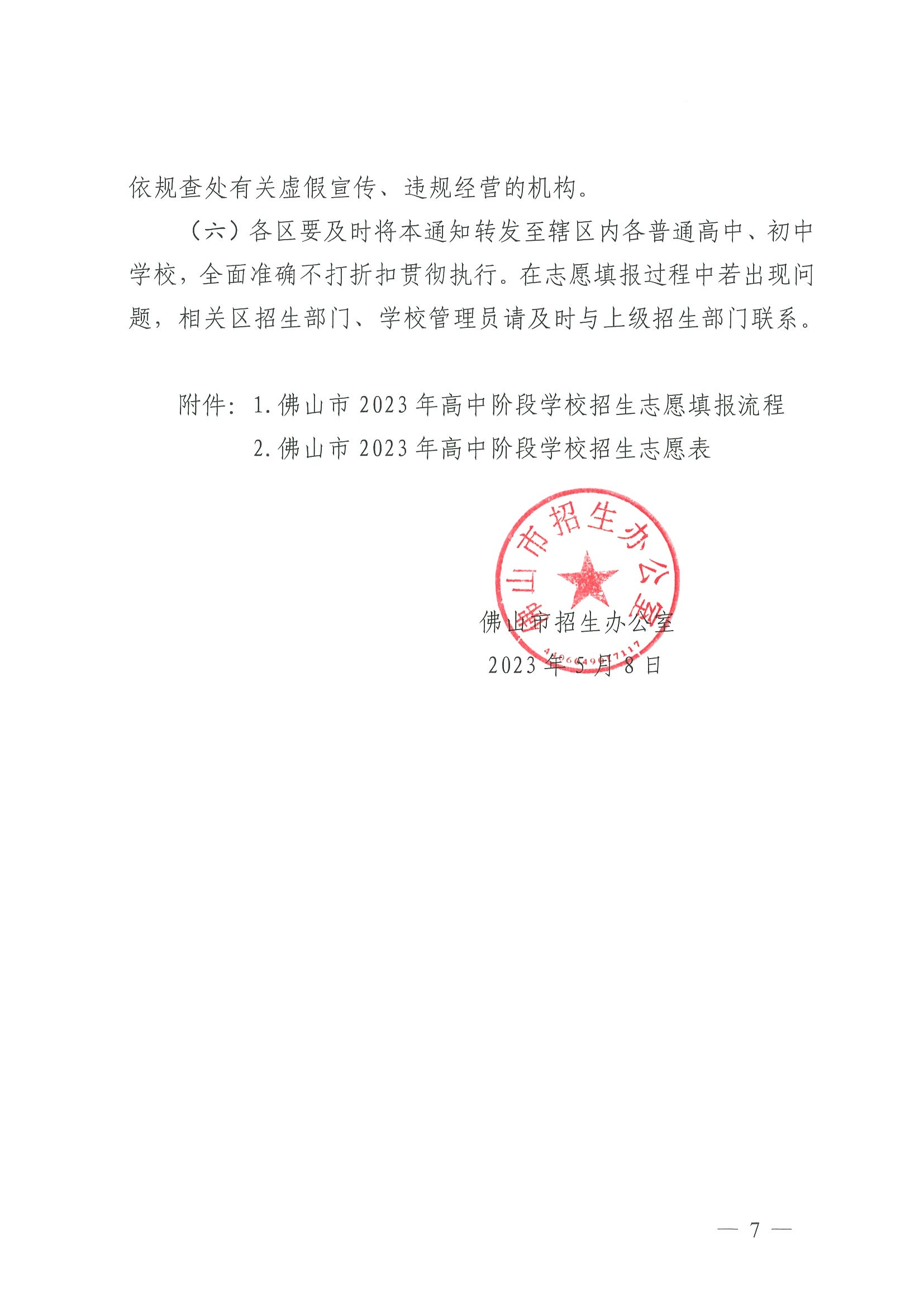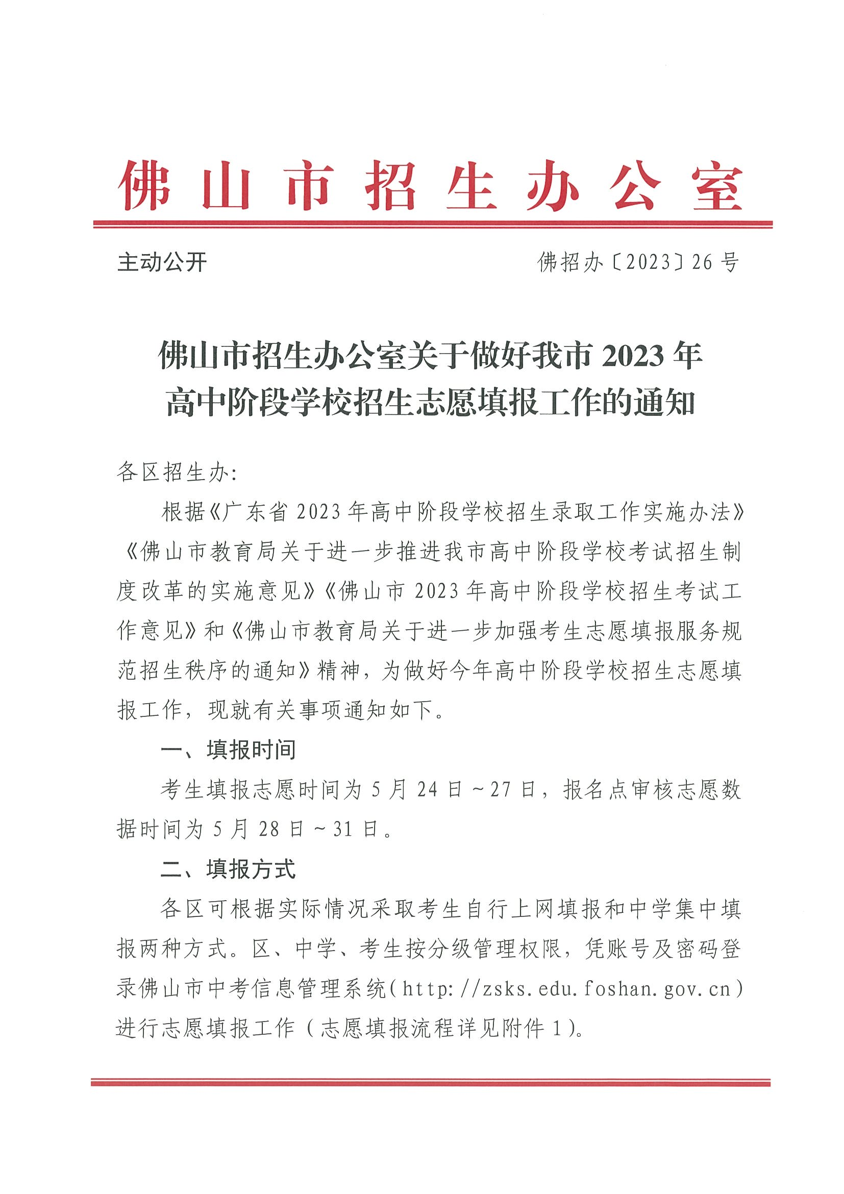 广东佛山2023年高中阶段学校招生志愿填报工作的通知05-23
