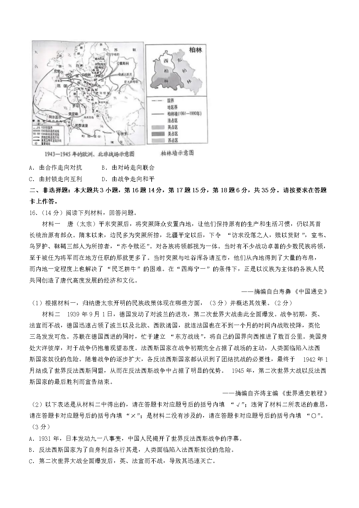 2023年重庆长寿中考历史真题及答案(A卷)(Word版)06-17