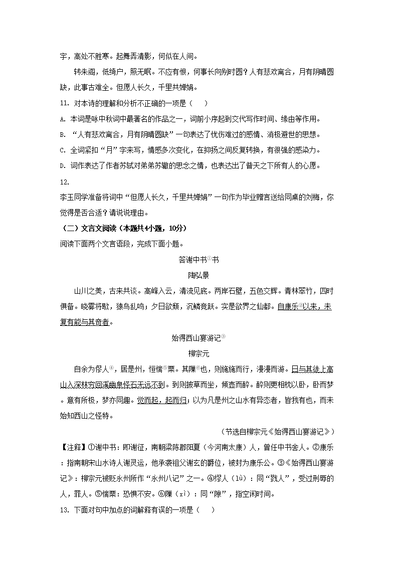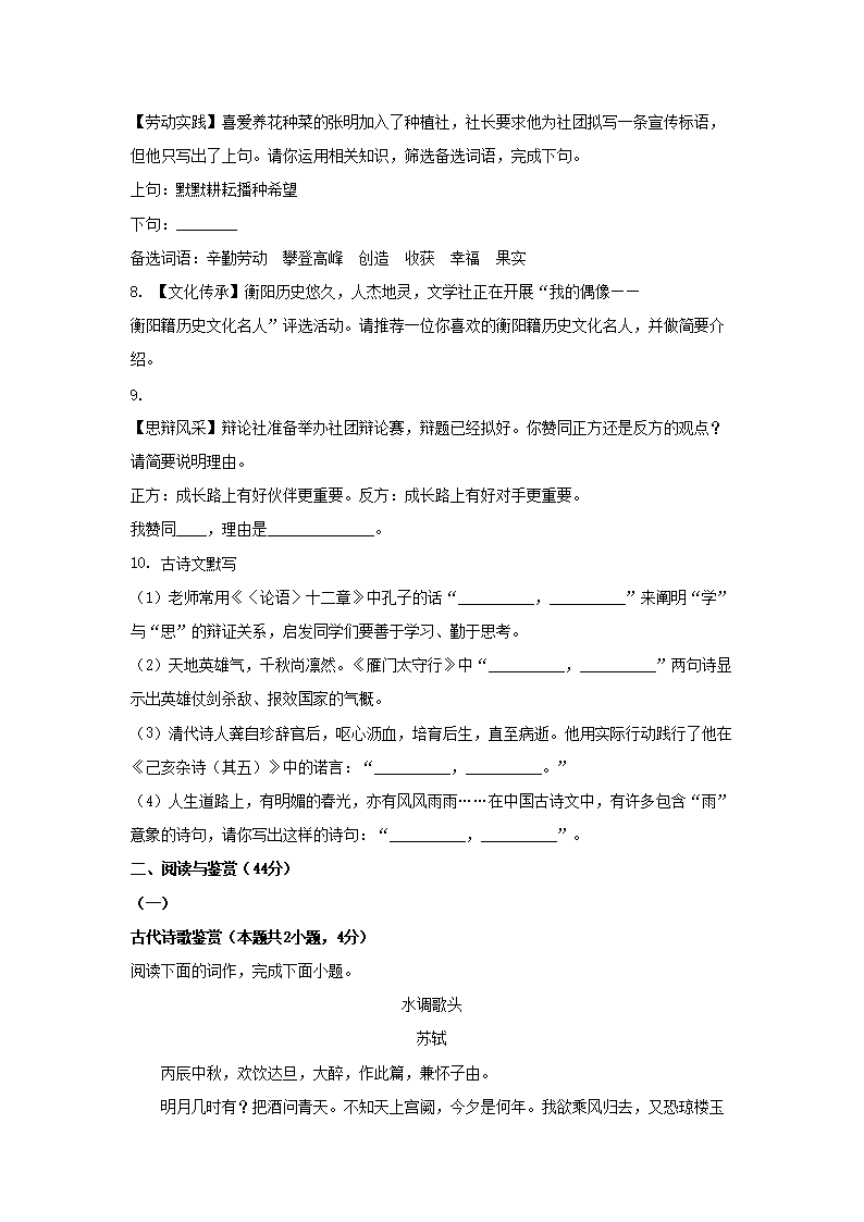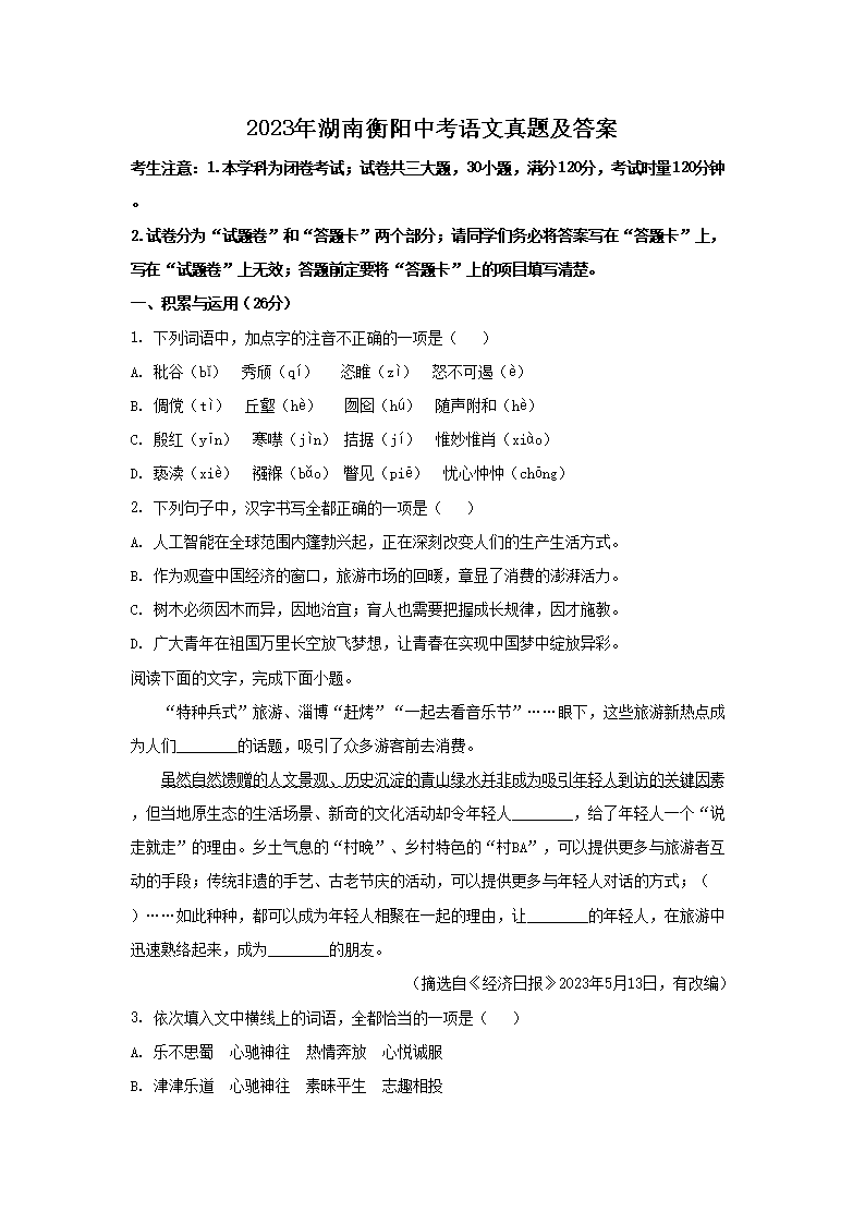 2023年湖南衡阳中考语文真题及答案(Word版)07-07