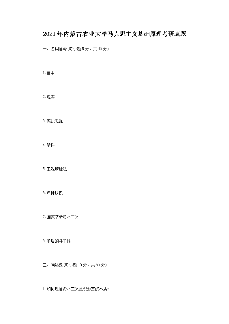 2021年内蒙古农业大学马克思主义基础原理考研真题(Word版)07-11