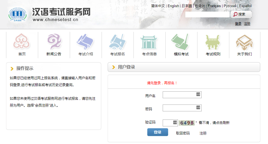 1、登录汉语考试服务网www.chinesetest.cn。
