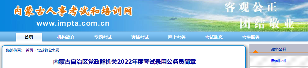 【#公务员考试# 导语】®文档大全网从内蒙古人事考试和培训网获悉,2022年内蒙古考试录用公务员报考工作现已开始,报名时间:3月1日-6日,考试时间:3月26日-27日,更多事宜请参考阅读《考试公告》,官方公告原文如下: