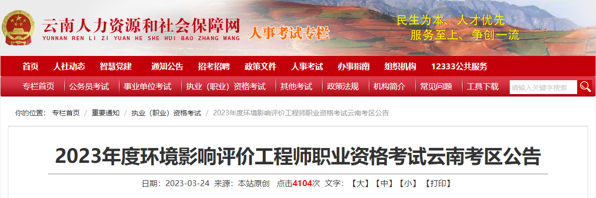 原文标题:关于做好2023年度环境影响评价工程师职业资格考试云南考区考务工作的通知