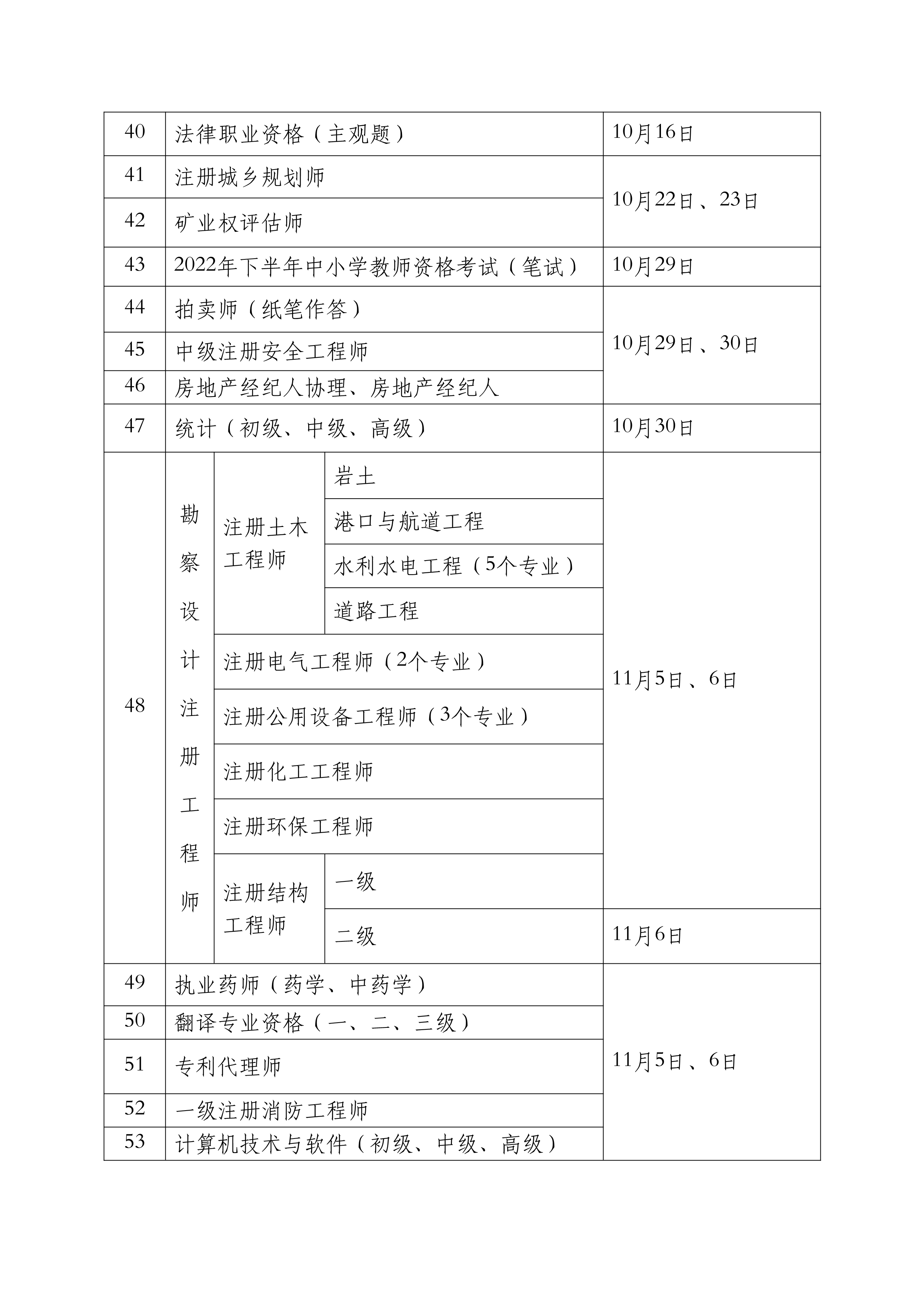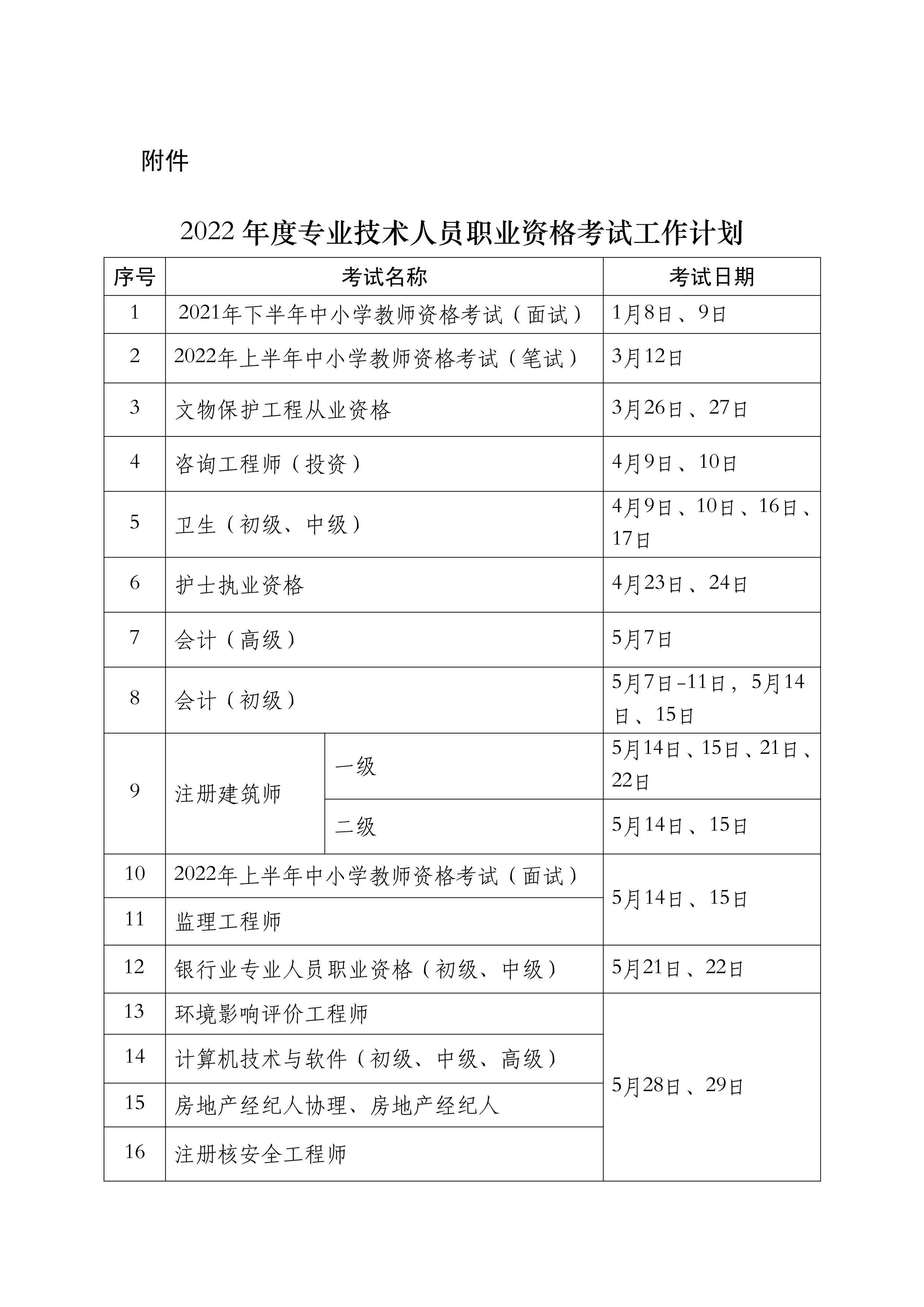 为做好专业技术人员职业资格考试规划和管理工作,便于广大专业技术人员参加职业资格考试,经商有关部门同意,现就2022年度专业技术人员职业资格考试计划及有关事项通知如下: